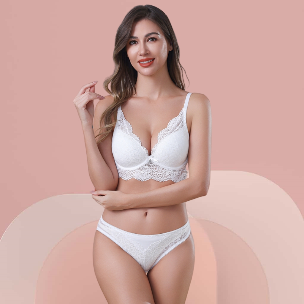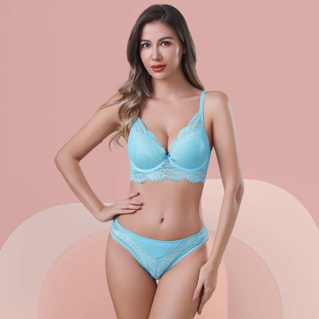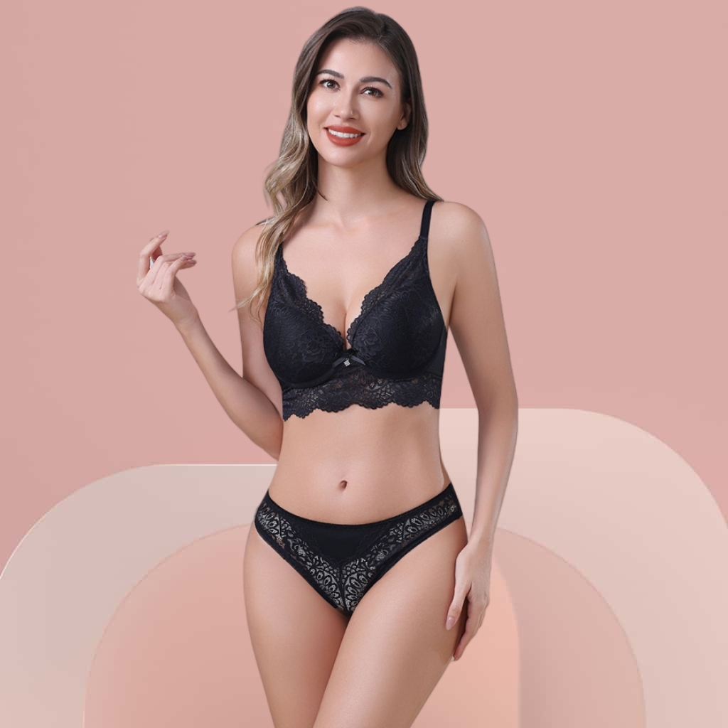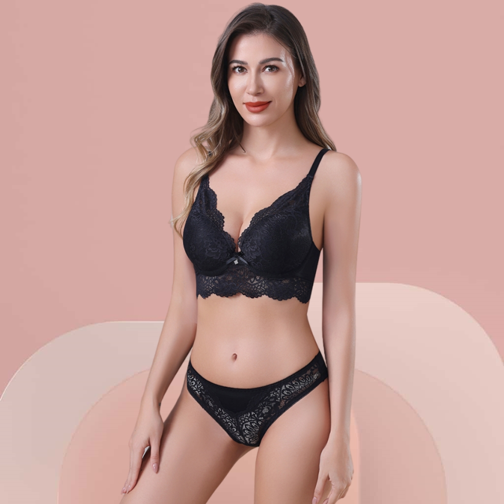 Z&D Lingerie Conjunto Com Aro Renda e Bojo Calcinha Tanga 8063