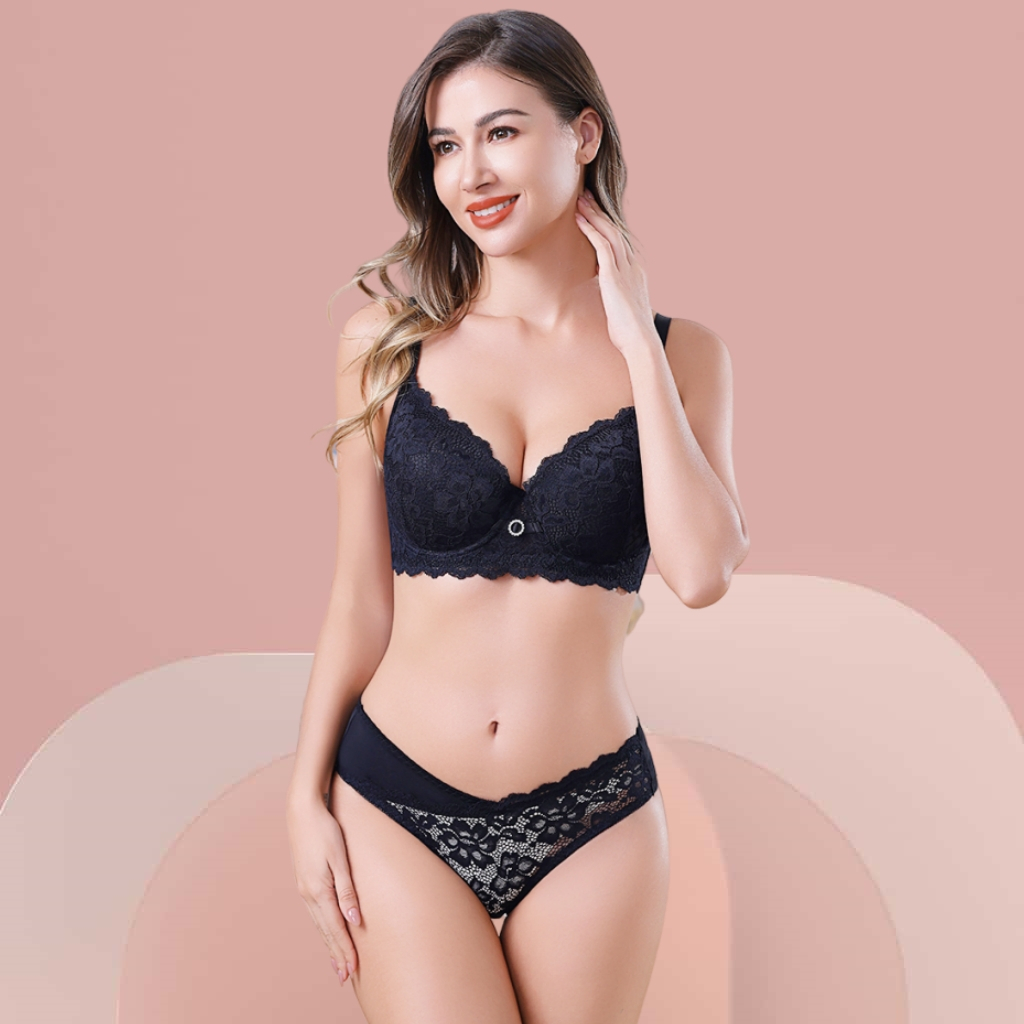 Z&D Lingerie Conjunto Plus Size Com Aro Renda e Bojo Calcinha Tanga 8010