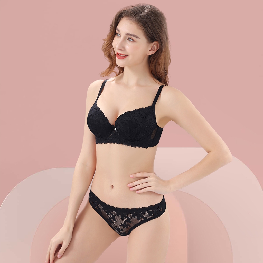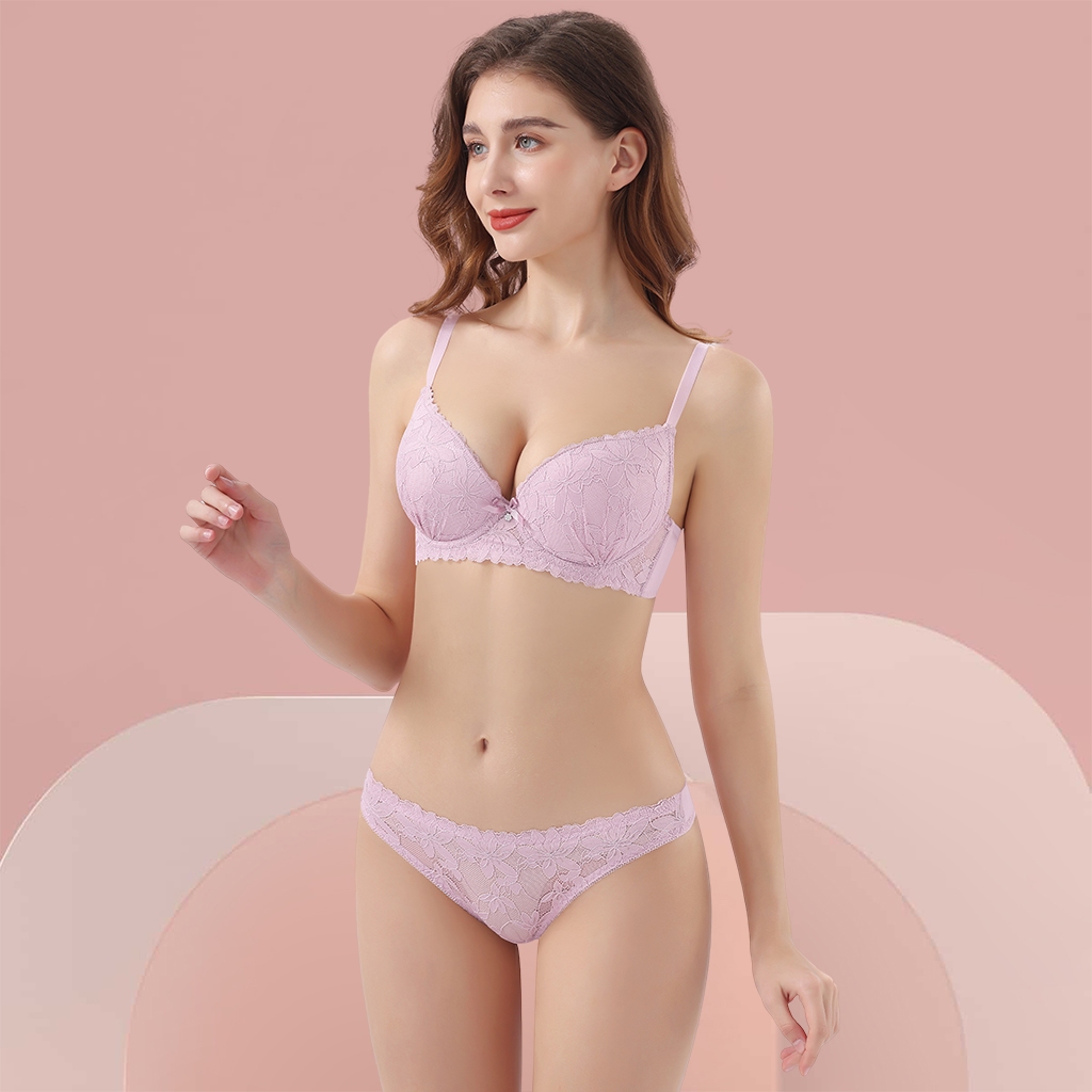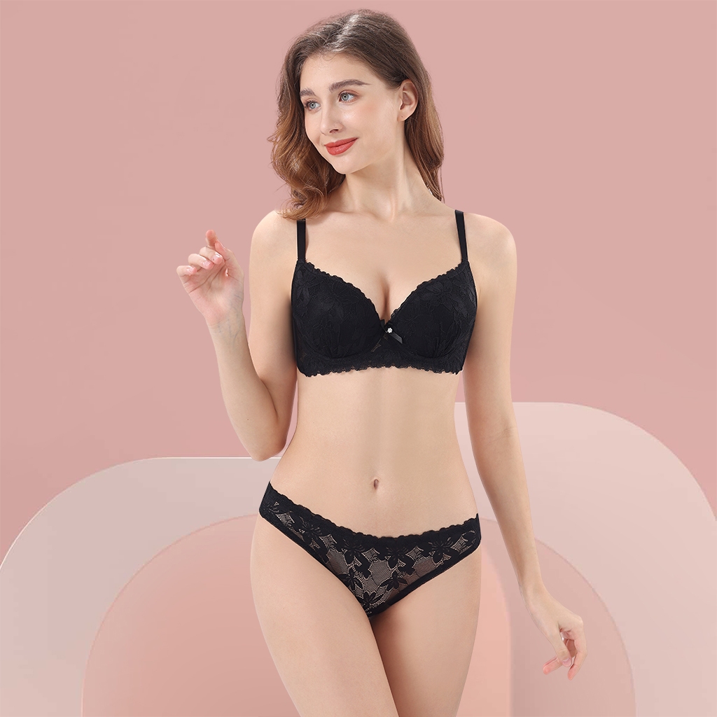 Z&D Lingerie Conjunto Com Aro Renda e Bojo Calcinha Fio Dental 8092