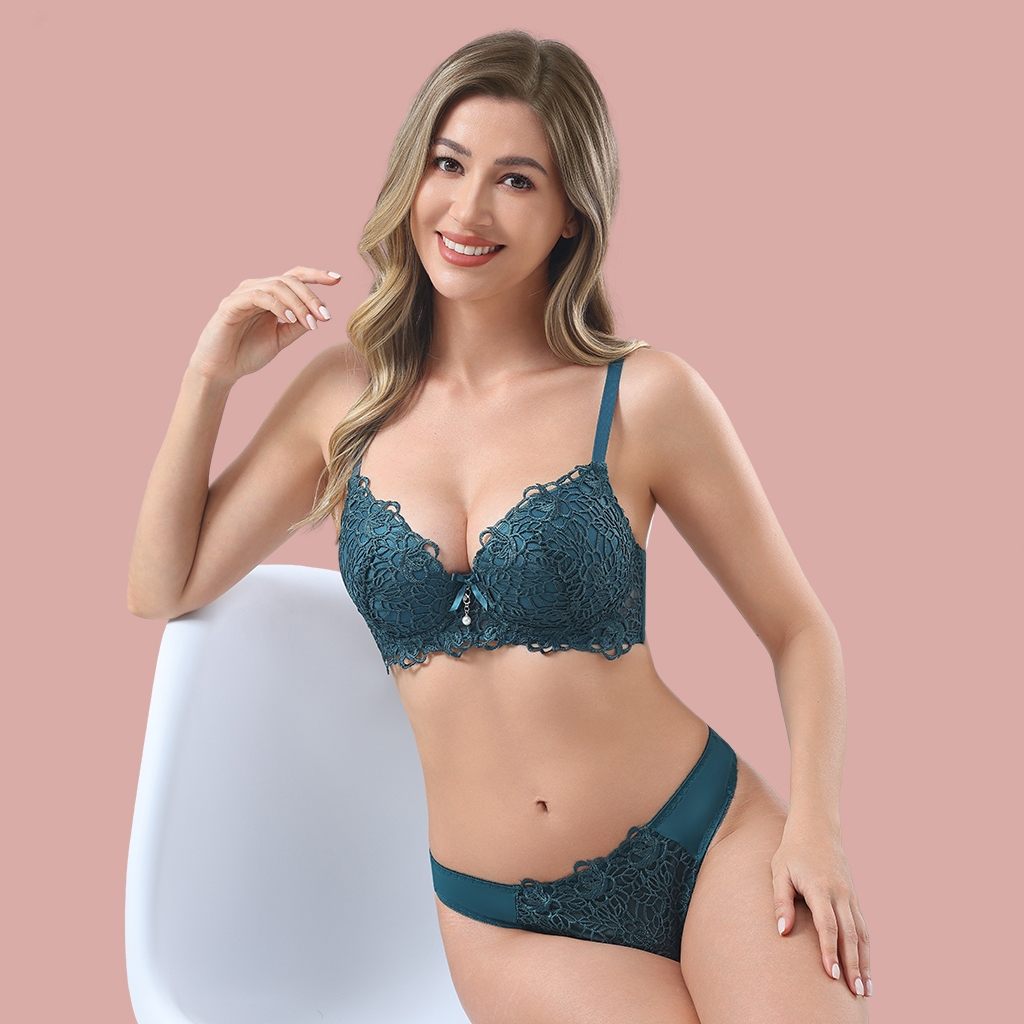 Z&D Lingerie Conjunto em Renda Gripier Floral Com Bojo, Aro e Calcinha Fio 6686