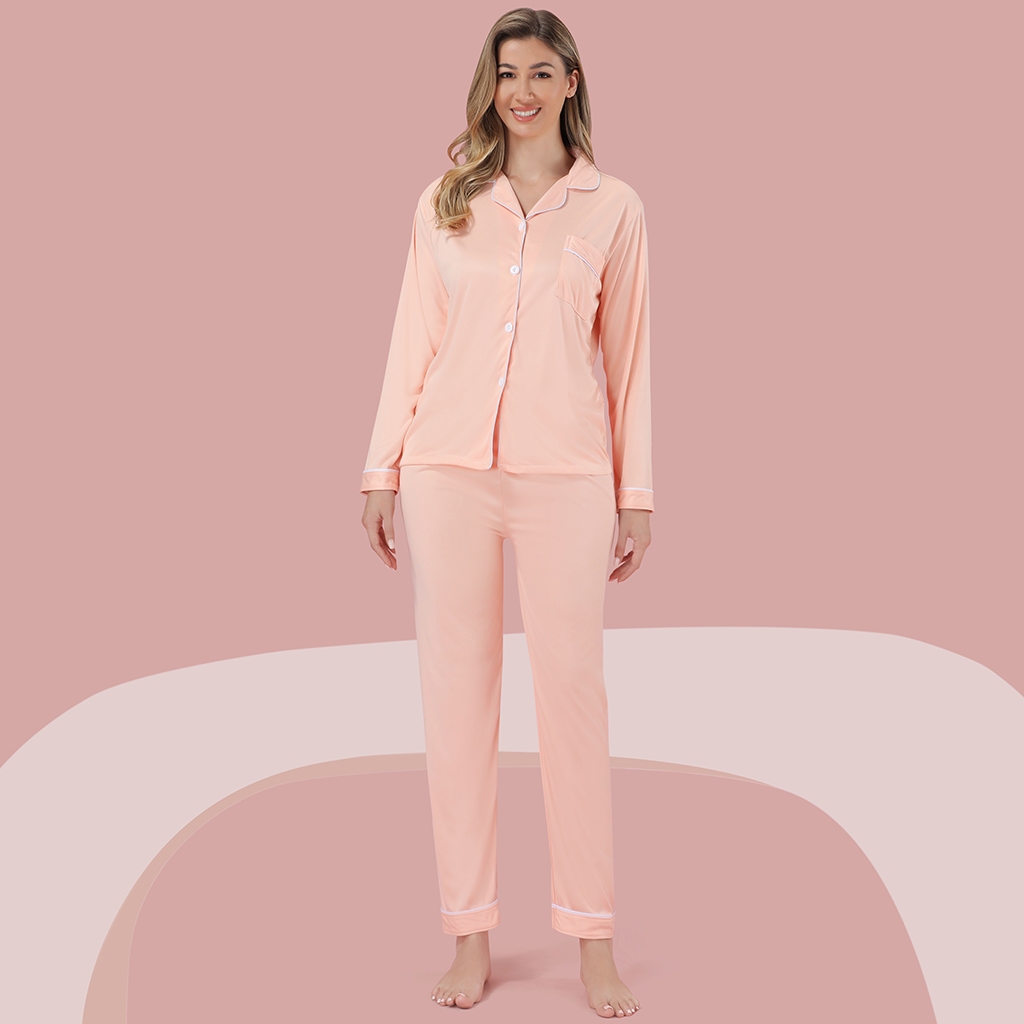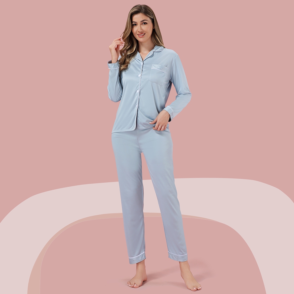 Z&D Lingerie Pijama Feminino Manga E Calça Longa Aberto Com Botão Lisa SY13