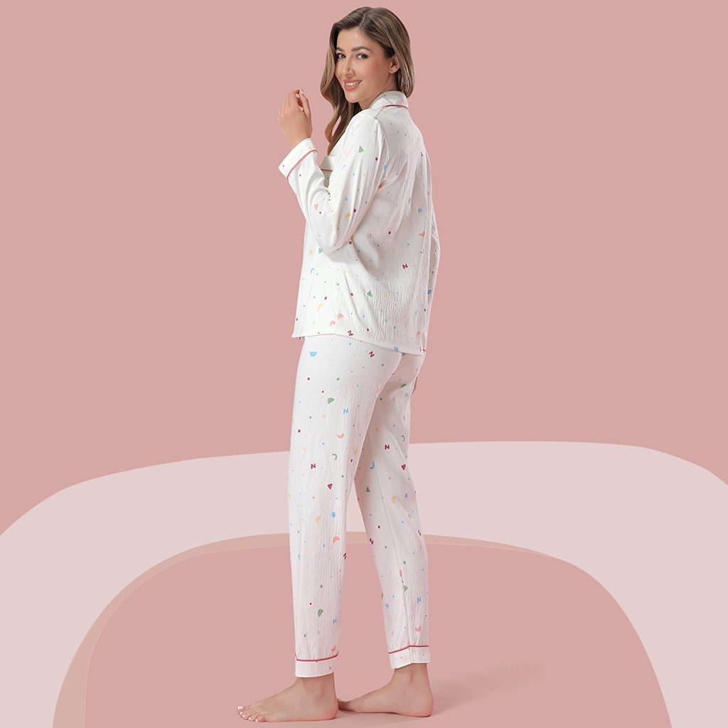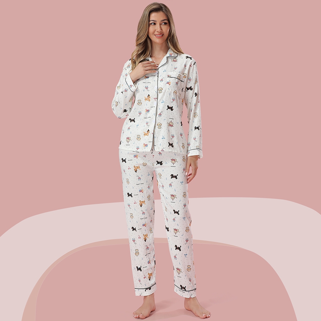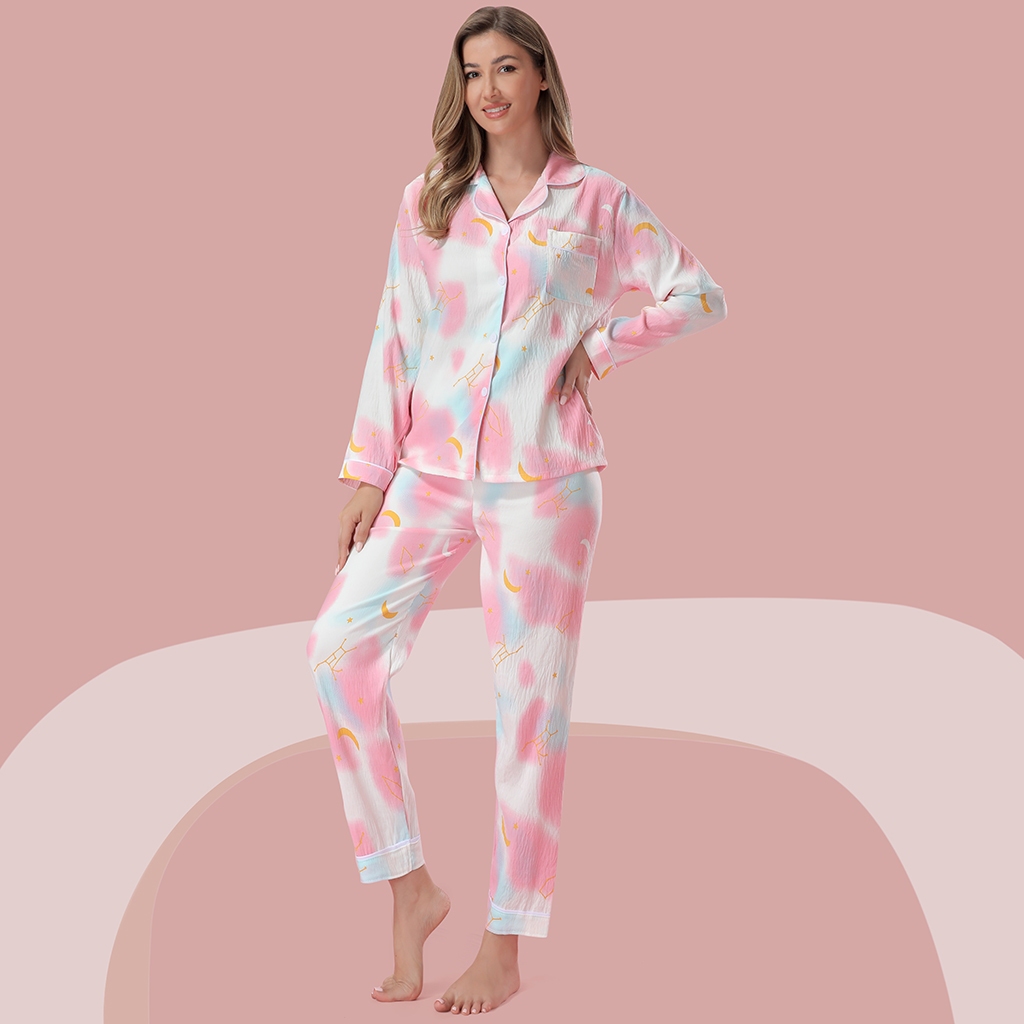 Z&D Lingerie Pijama Feminino Manga E Calça Longa Aberto Com Botão Estampado SY10