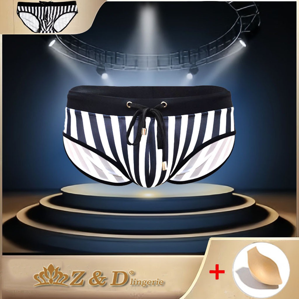 Z&D Lingeries Sungas Masculinas Cavadas Nylon Cintura Baixa Biquíni Macio Com Bojo UDL110