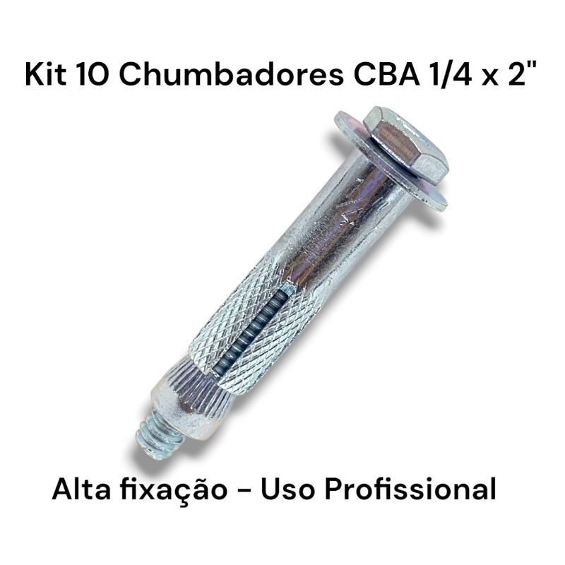 Kit 10 Parabolts Chumbador CBA 1/4x2 para furos de 10mm – Aço Zincado, Alta Fixação em Concreto