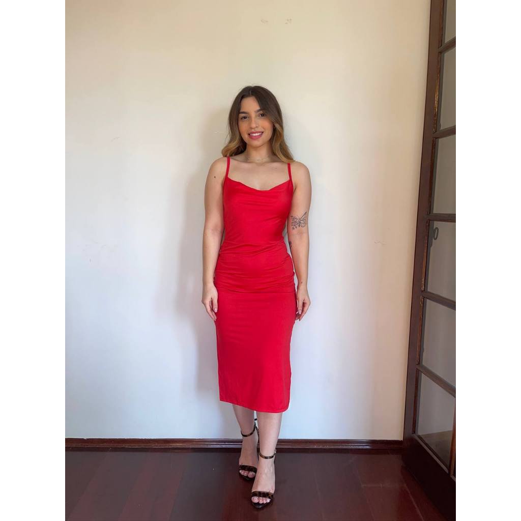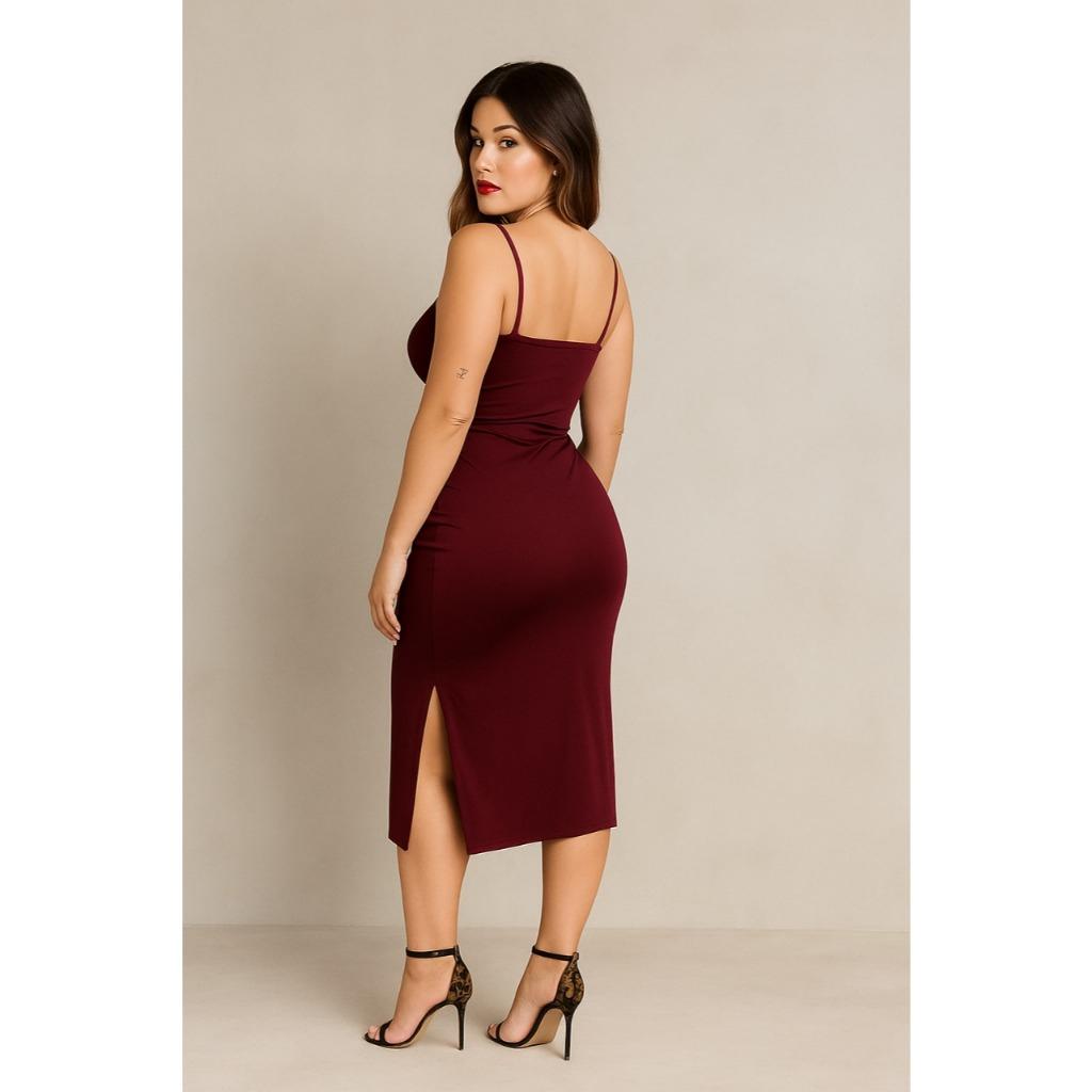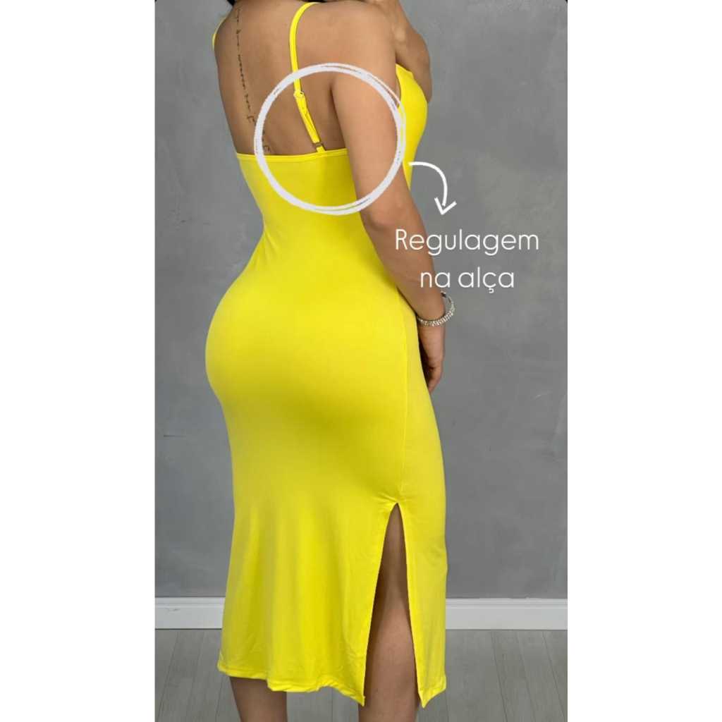 Vestido Midi Romantic Com Fendas Laterais Alça com regulagem