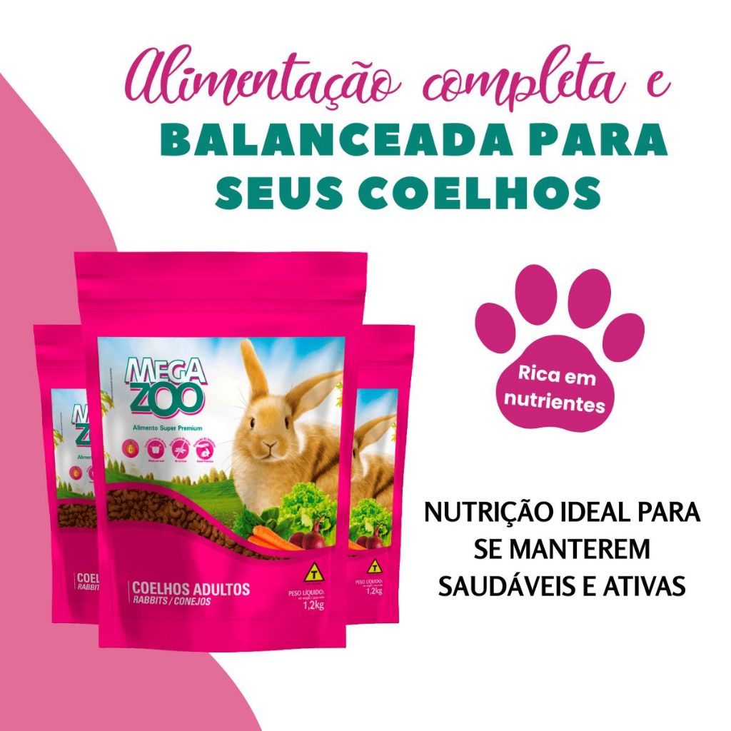 Megazoo Super Premium Extrusada Coelhos Ornamentais 1,2kg Nutrição Avançada Adultos