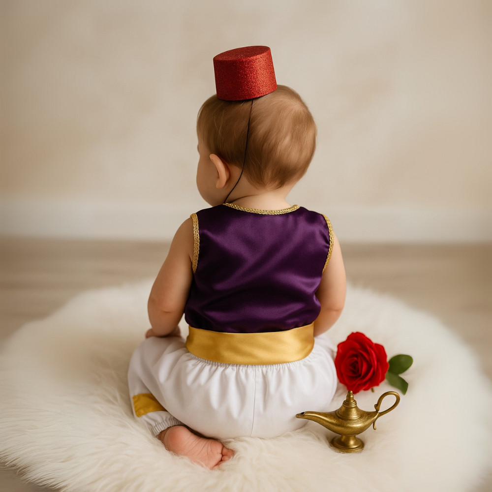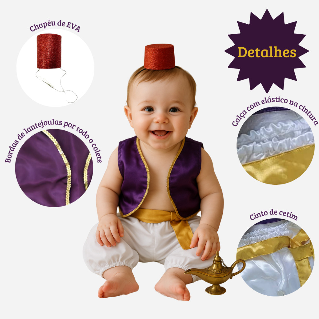 Fantasia Aladdin calça e colete Bebê com acessórios Ideal para Mesversário e Festa, Halloween