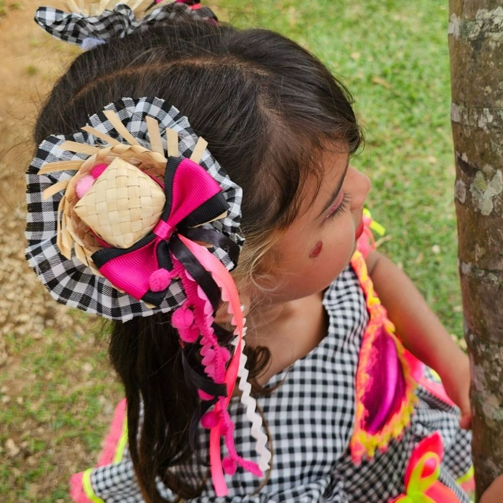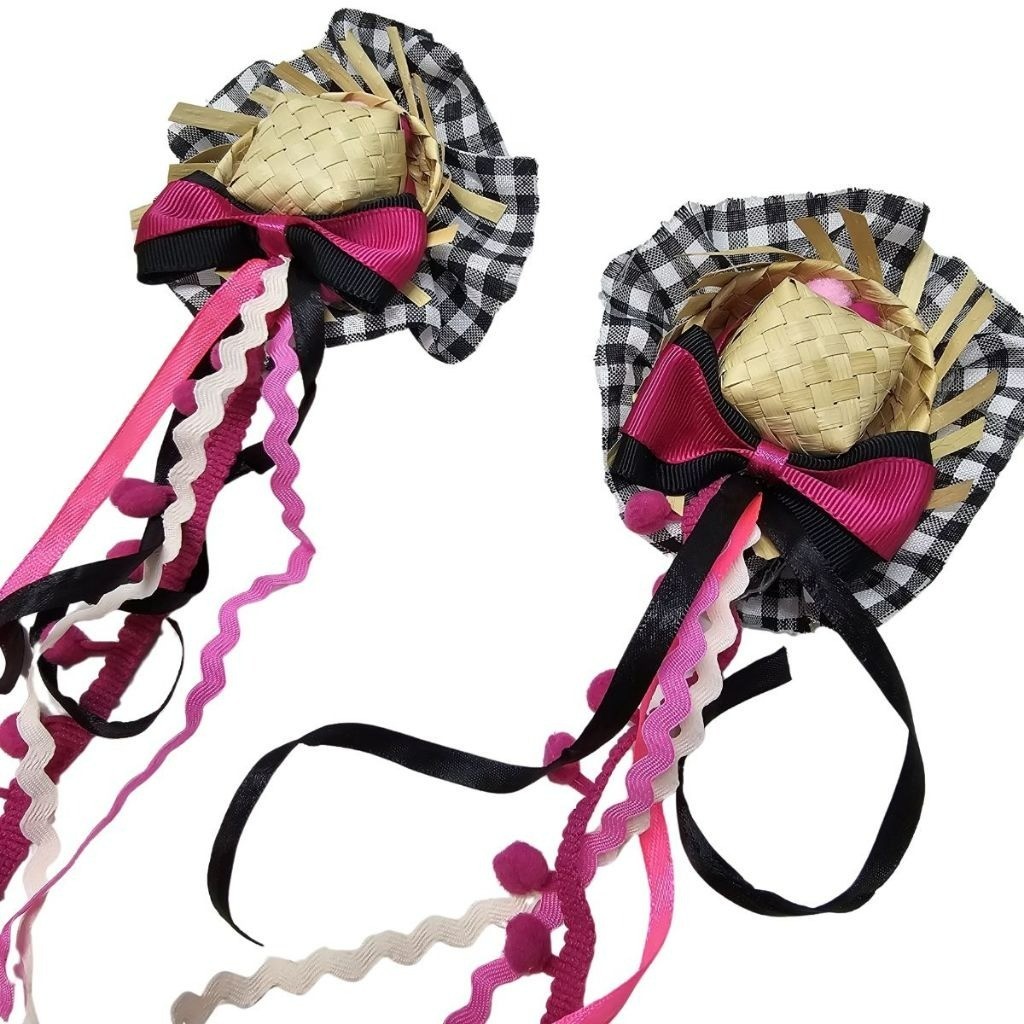 Kit presilha de Cabelo Festa Junina Laço Infantil Preto e Rosa