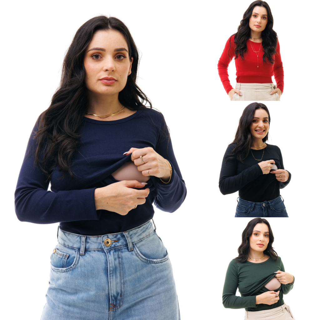 Kit com 4 Blusas de Manga Longa com Abertura Para Amamentação