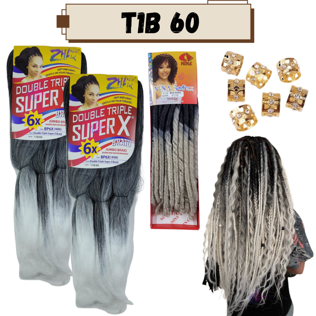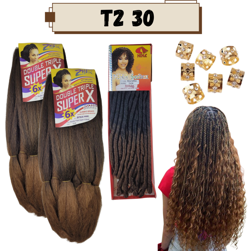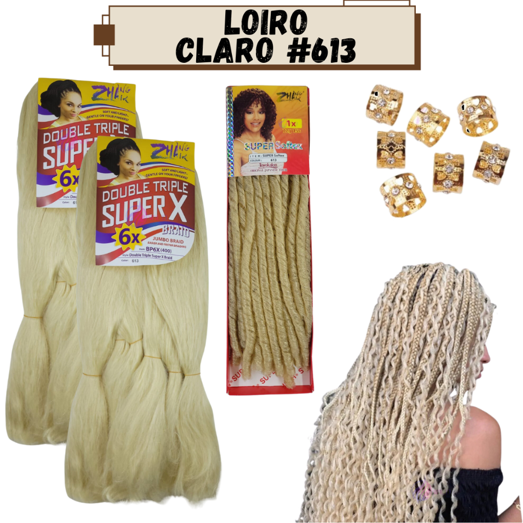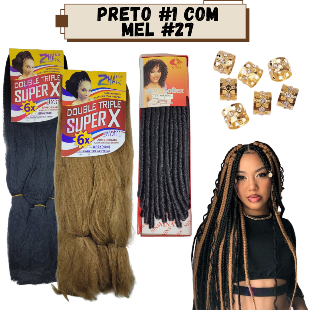 Kit 2 Cabelo Jumbo Jumbão Gypsy Braids Super X Kanekalon Tranças + Nina Softex + Anéis