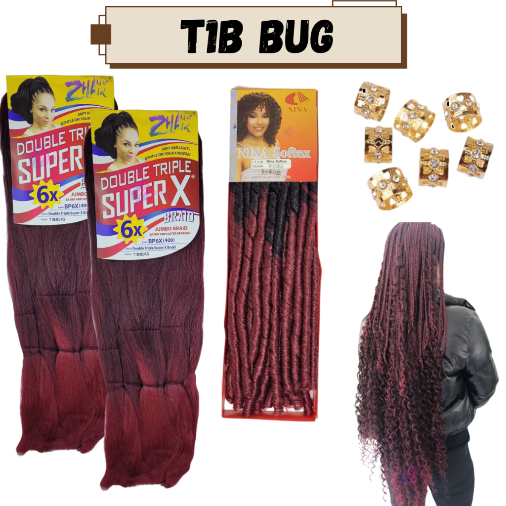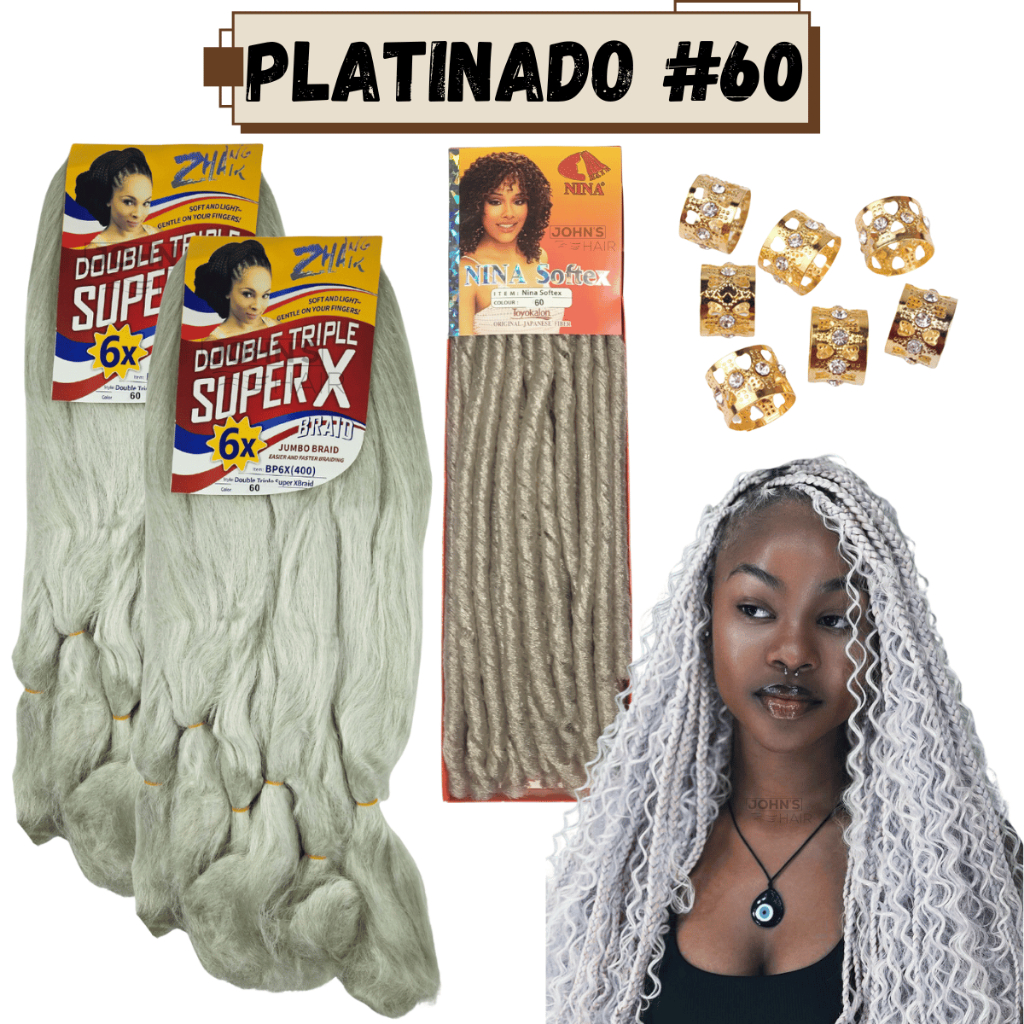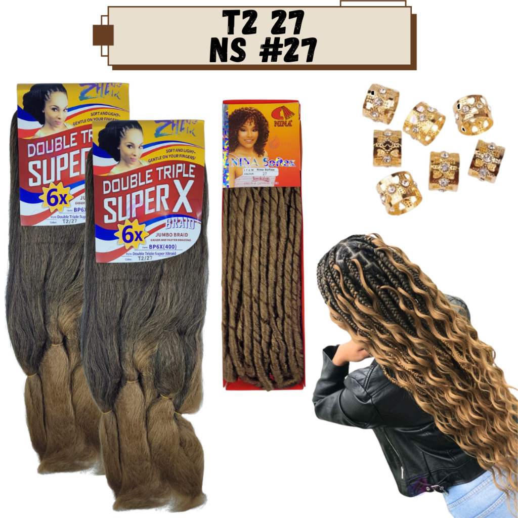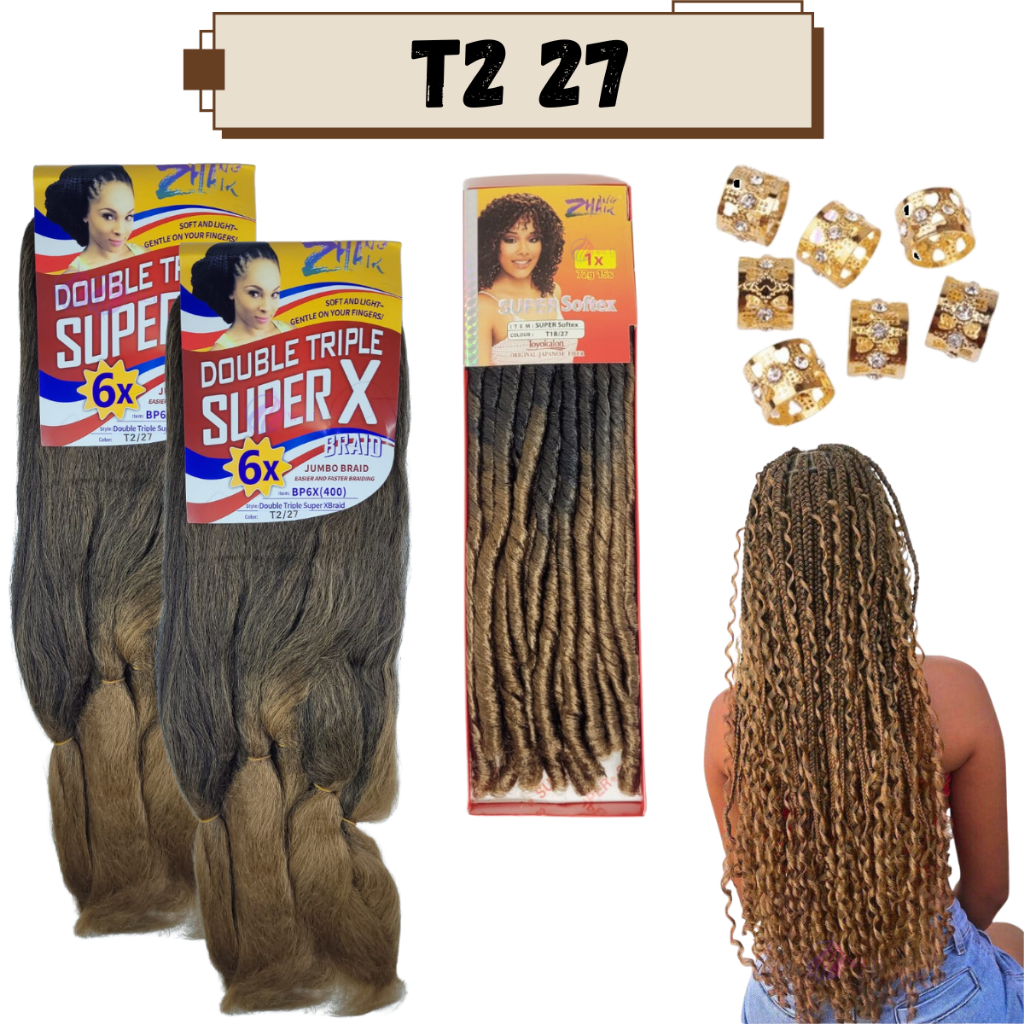 Kit 2 Cabelo Jumbo Jumbão Gypsy Braids Super X Kanekalon Tranças + Nina Softex + Anéis