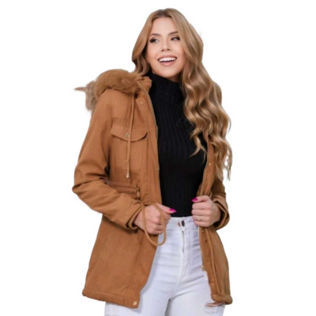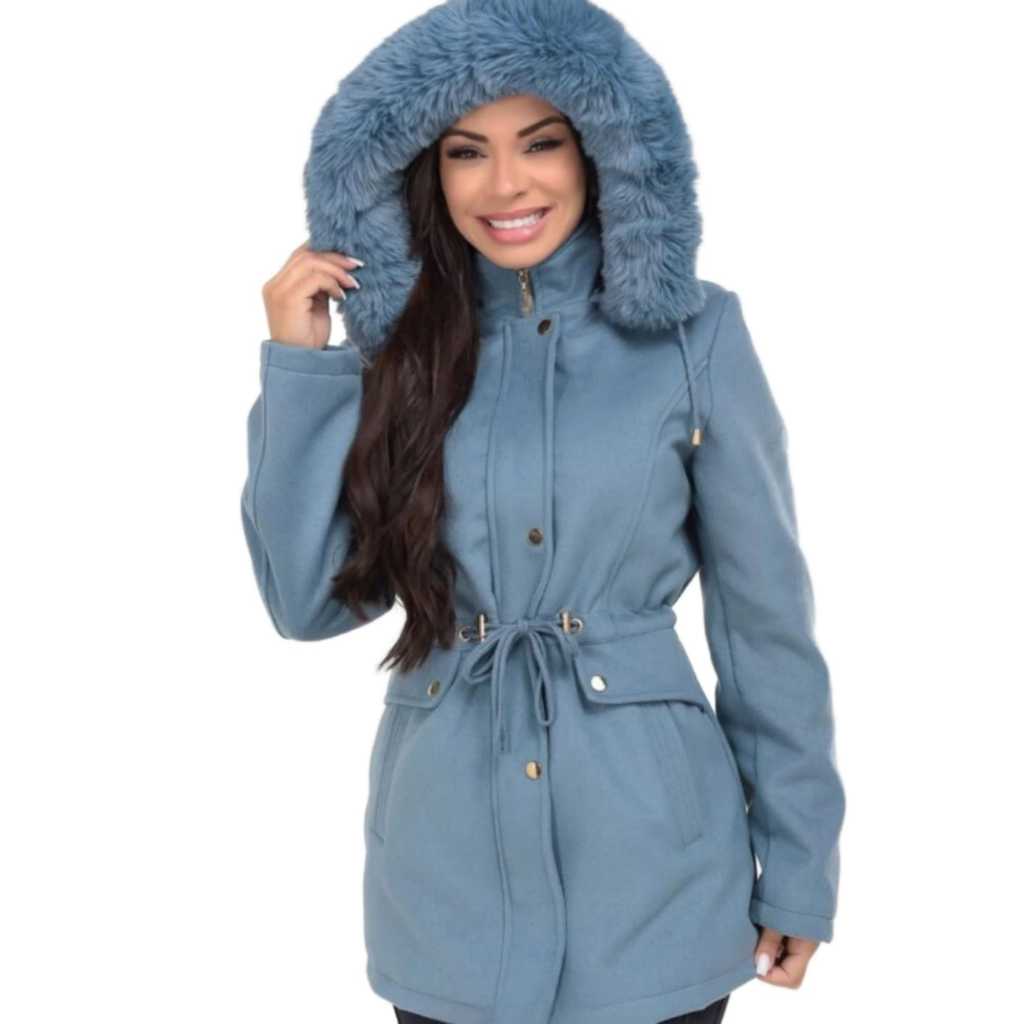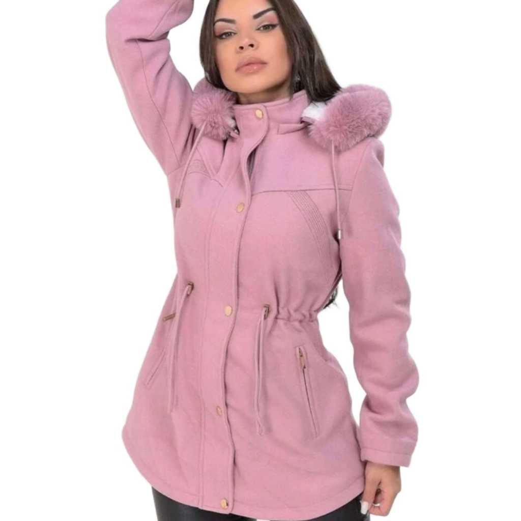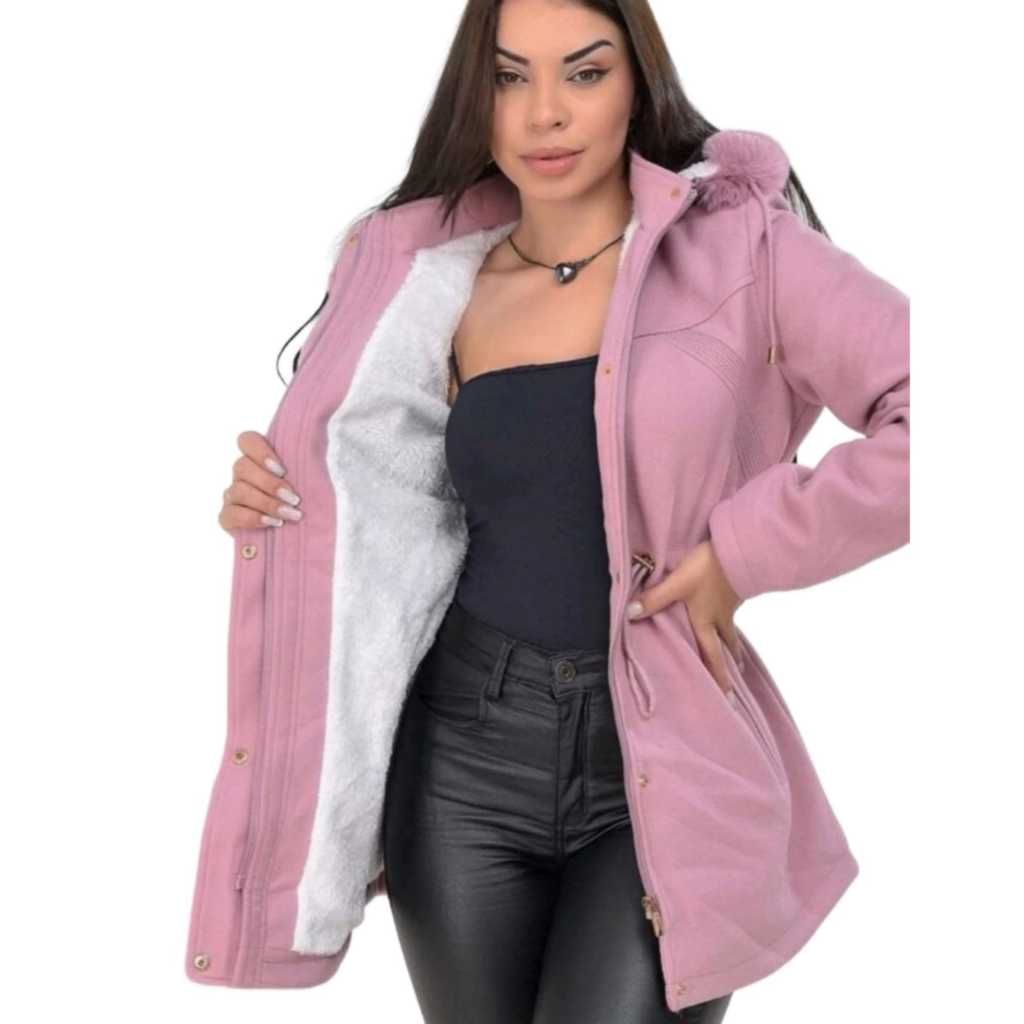 Casaco Parka Sobretudo lã batida Jaqueta inverno feminino Forrada