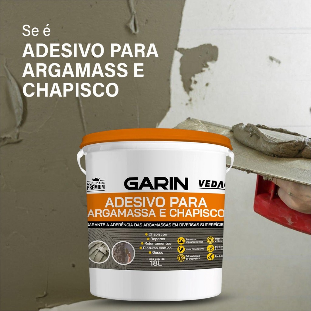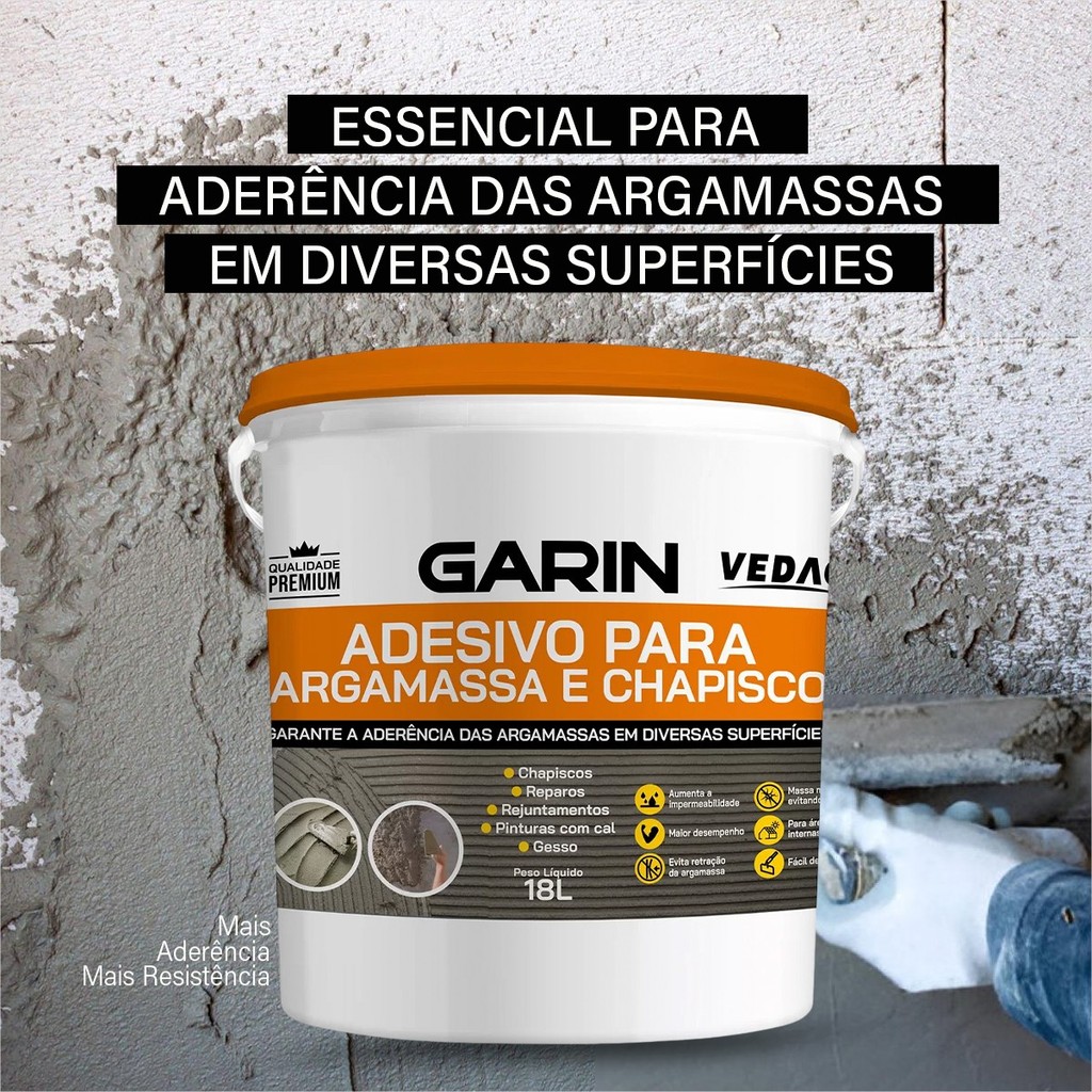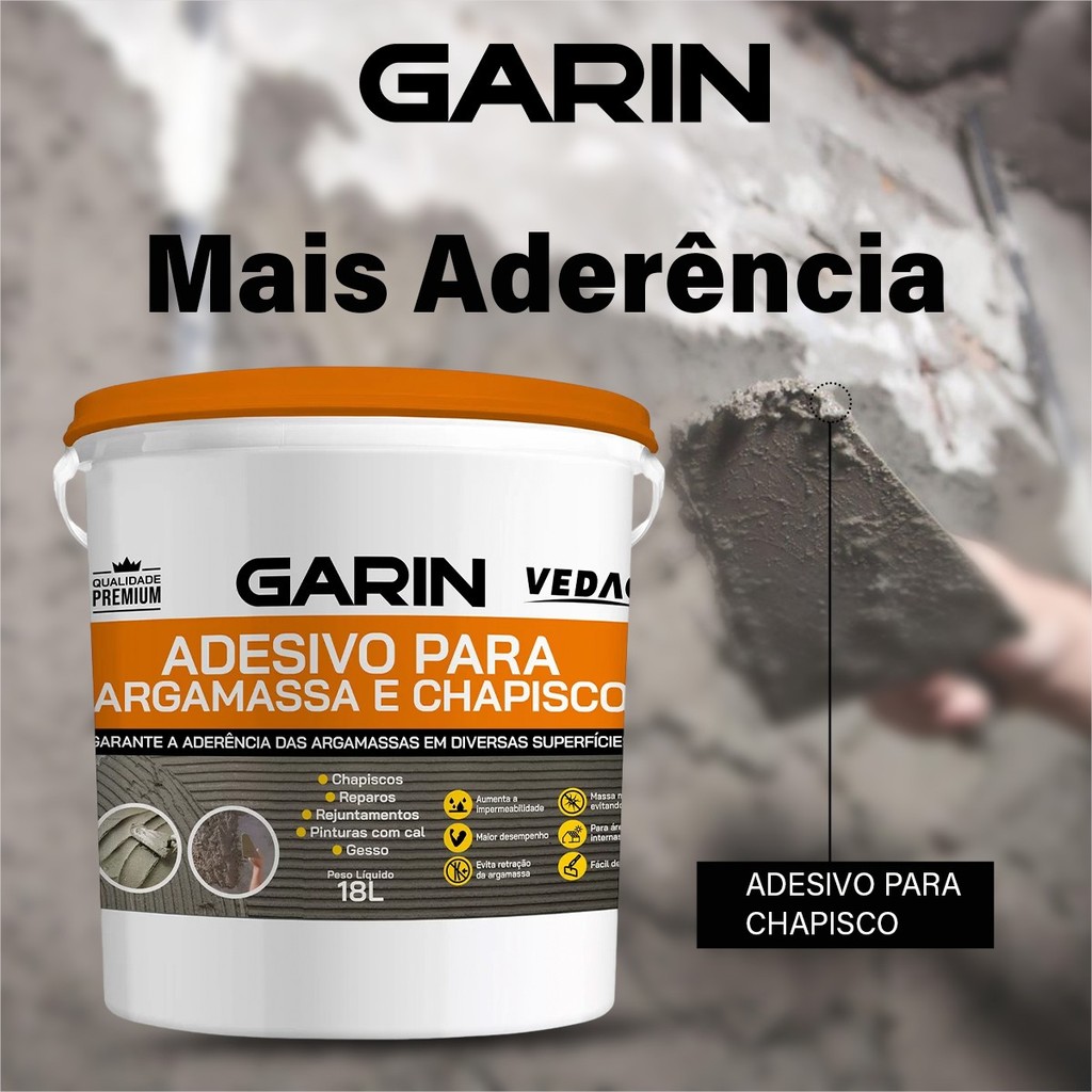 Aditivo Garin Adesivo Para Rebocos Argamassa e Chapisco 18L Branca