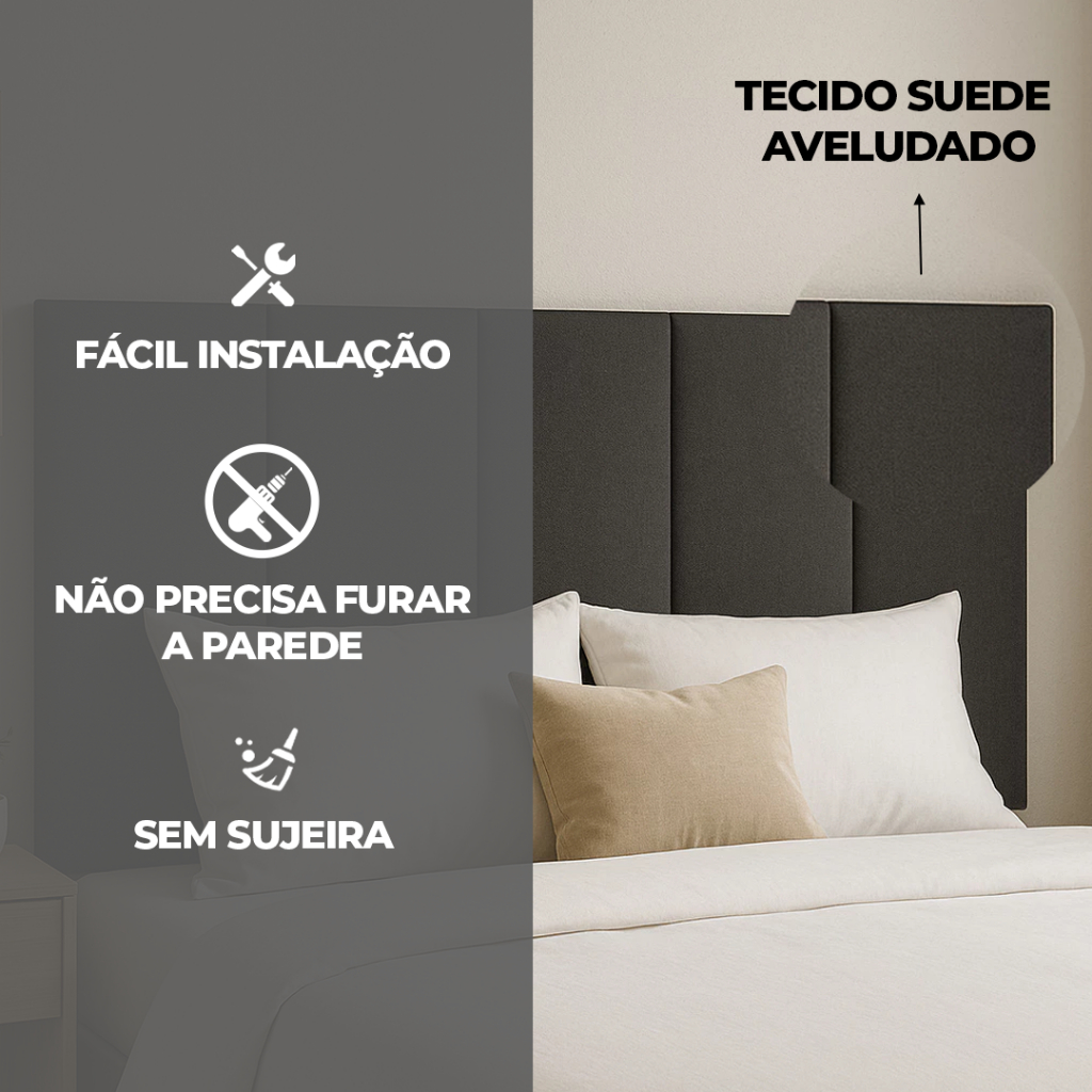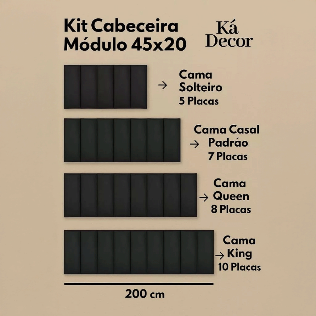 Kit Até 10 Placas de Cabeceira Modular Estofada 45X20 cm Cama Solteiro Casal Queen King
