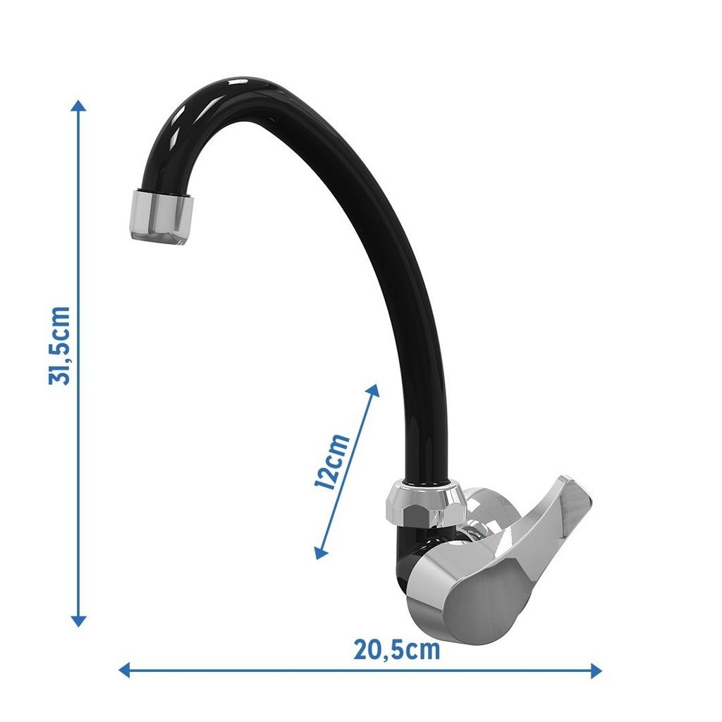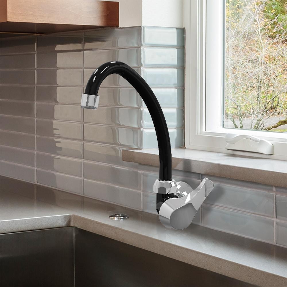 TORNEIRA DE COZINHA DE PAREDE PREMIUM - PRETA CROMADA
