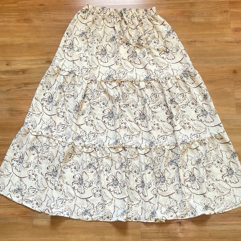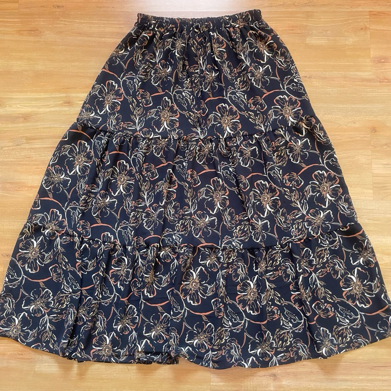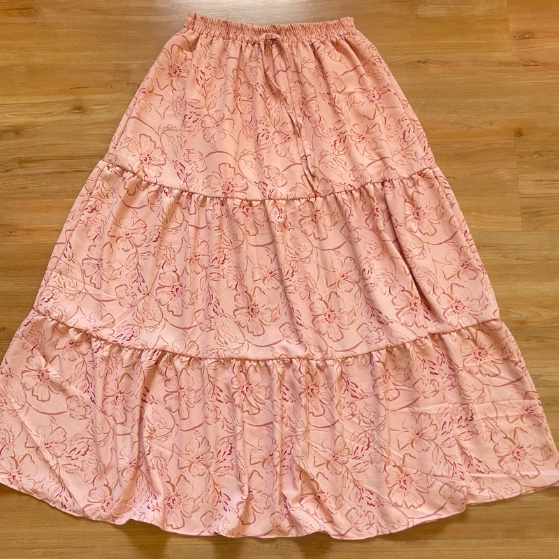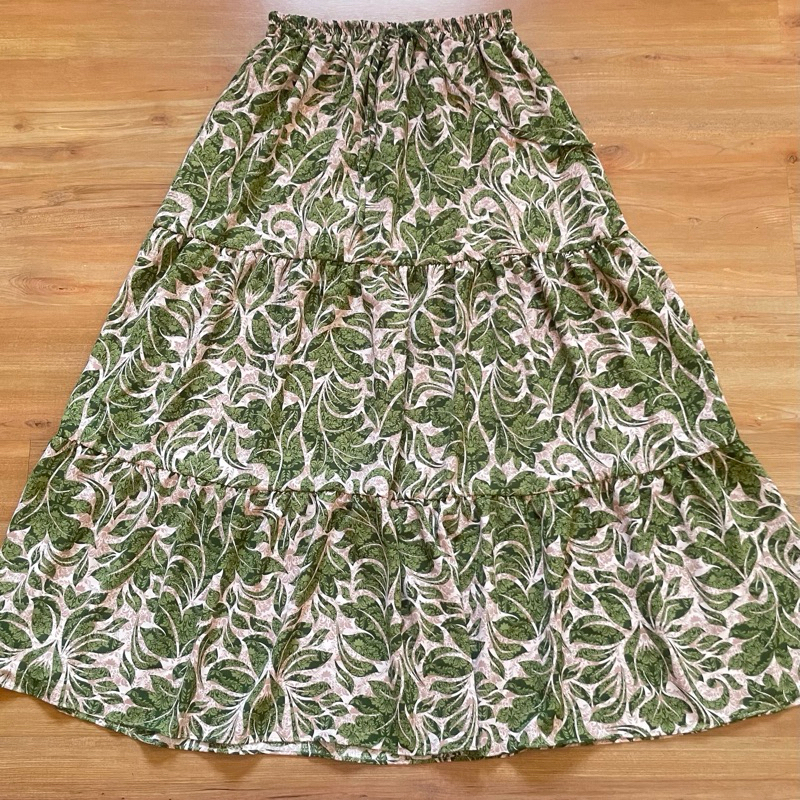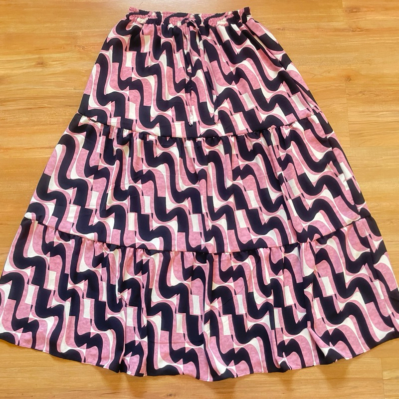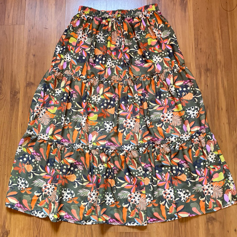Saia longa feminina plus size estampada babado camadas tres marias tecido duna premium elástico.