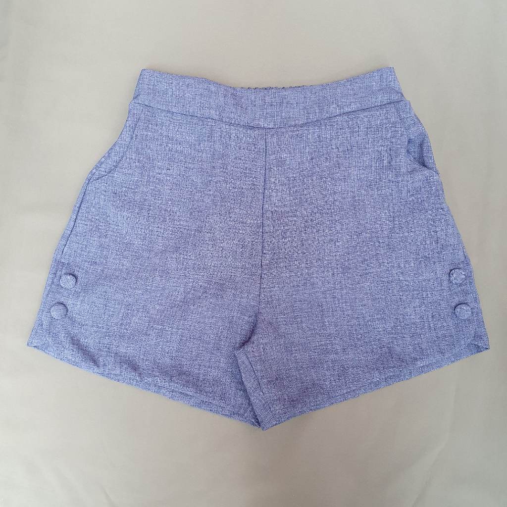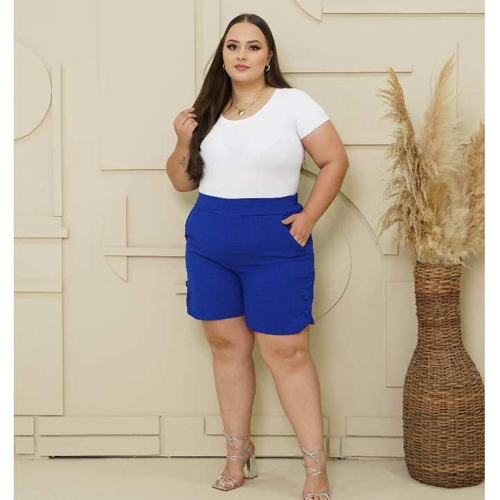 Short Feminino Plus Size Linho Social com bolso Botões forrados e Elástico na Cintura
