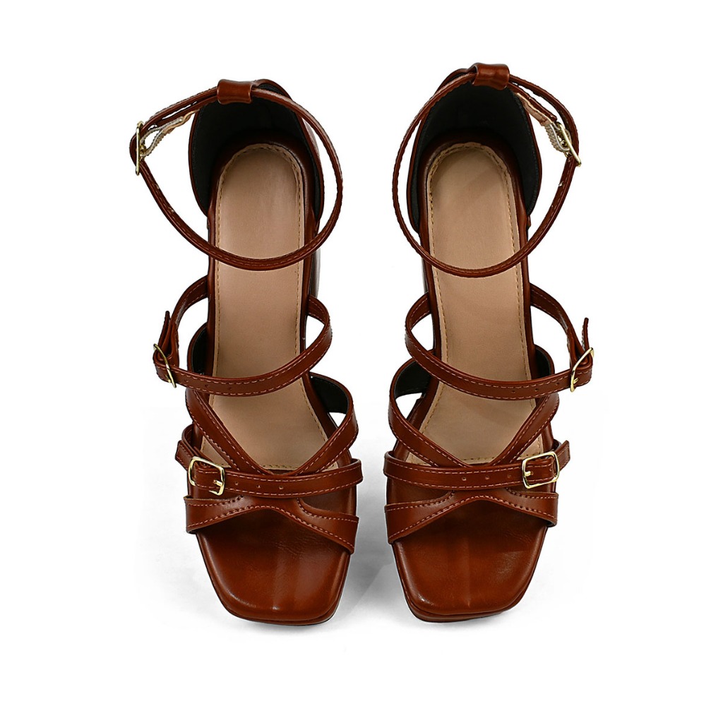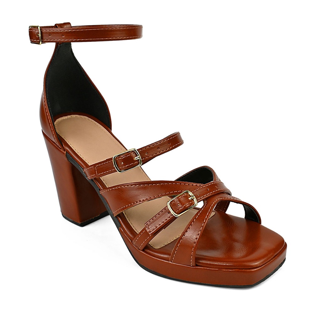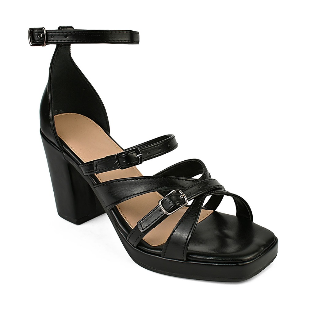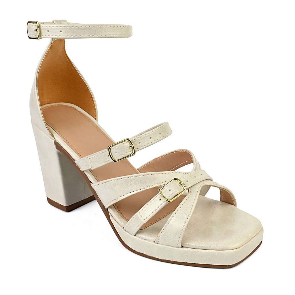 Sandalia Salto Feminina Meia Pata de Detalhes em Fivelas