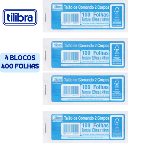 TALÃO COMANDO 2 CORPOS BLOCOS 100 FOLHAS TILIBRA & ANIMATIVA SD