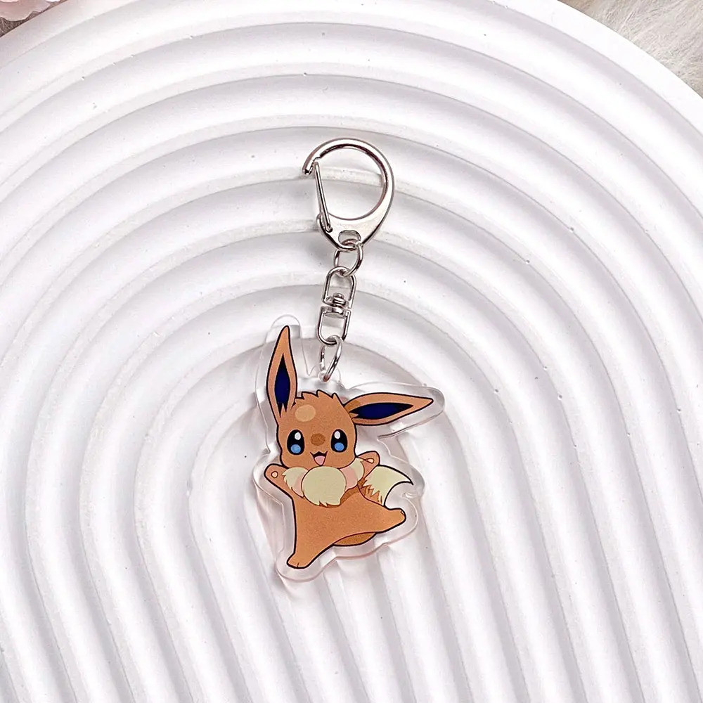 Chaveiro de Acrílico Pokémon Eevee Acessórios Pikachu Charizard Charme de Bolsa Pingente de Mochila Fofo Anel de Chave E
