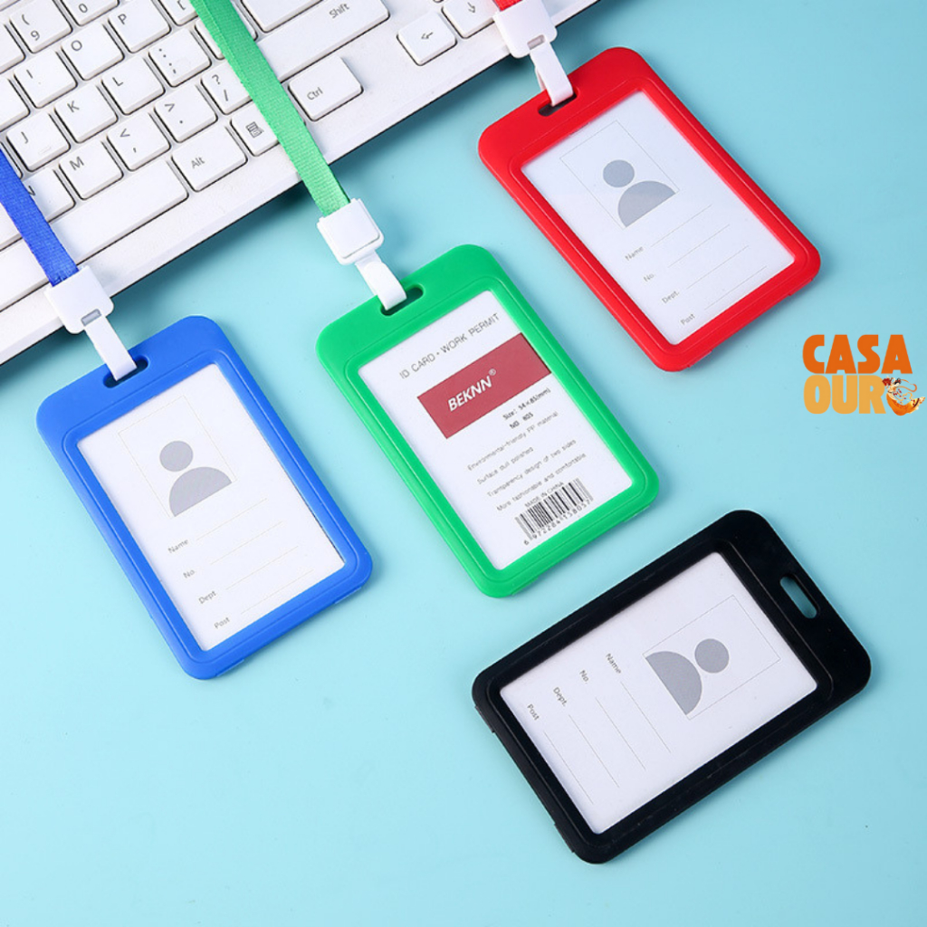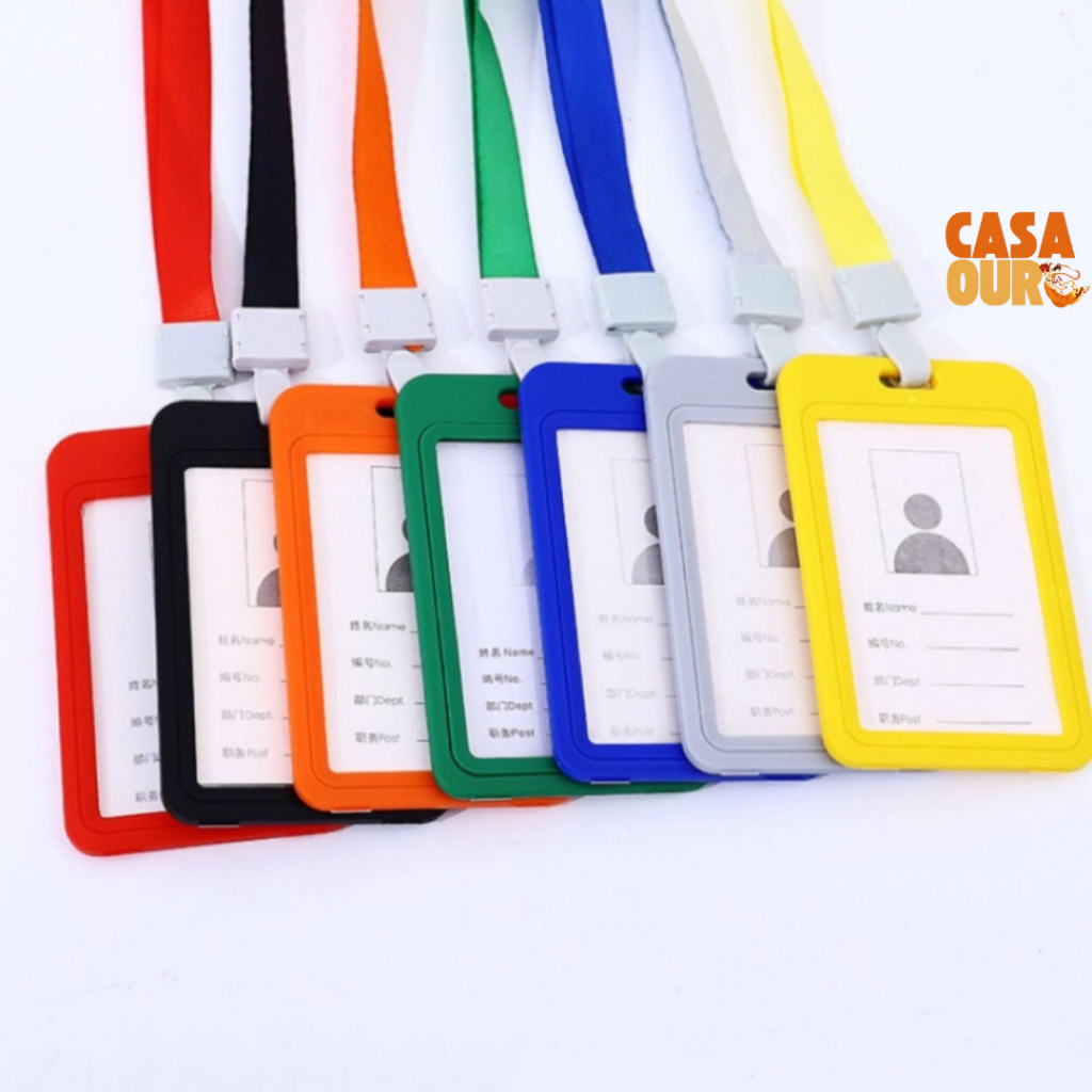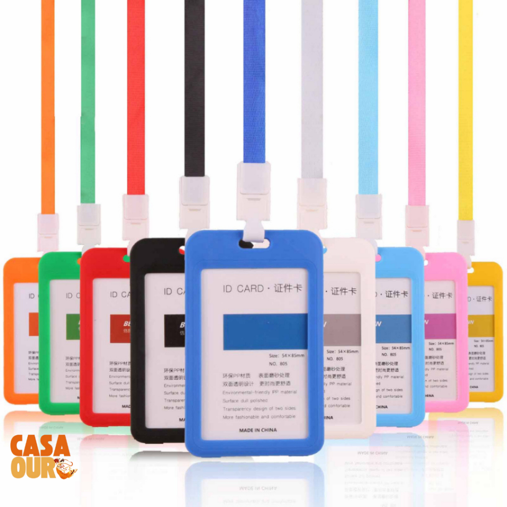 Porta Crachá Cartão Identificação com Cordão Multicorido Plástico Moderno Prático Escola Faculdade