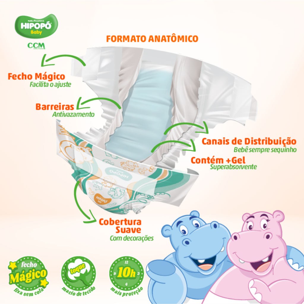 Fralda Descartável Infantil Hipopó Baby Hiper Tamanho XG - 64 Unidades