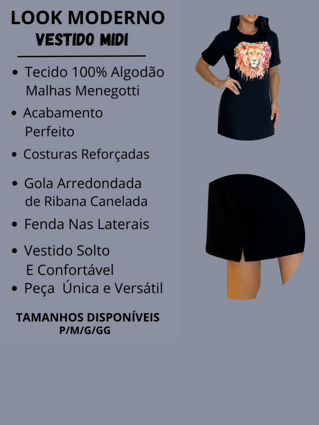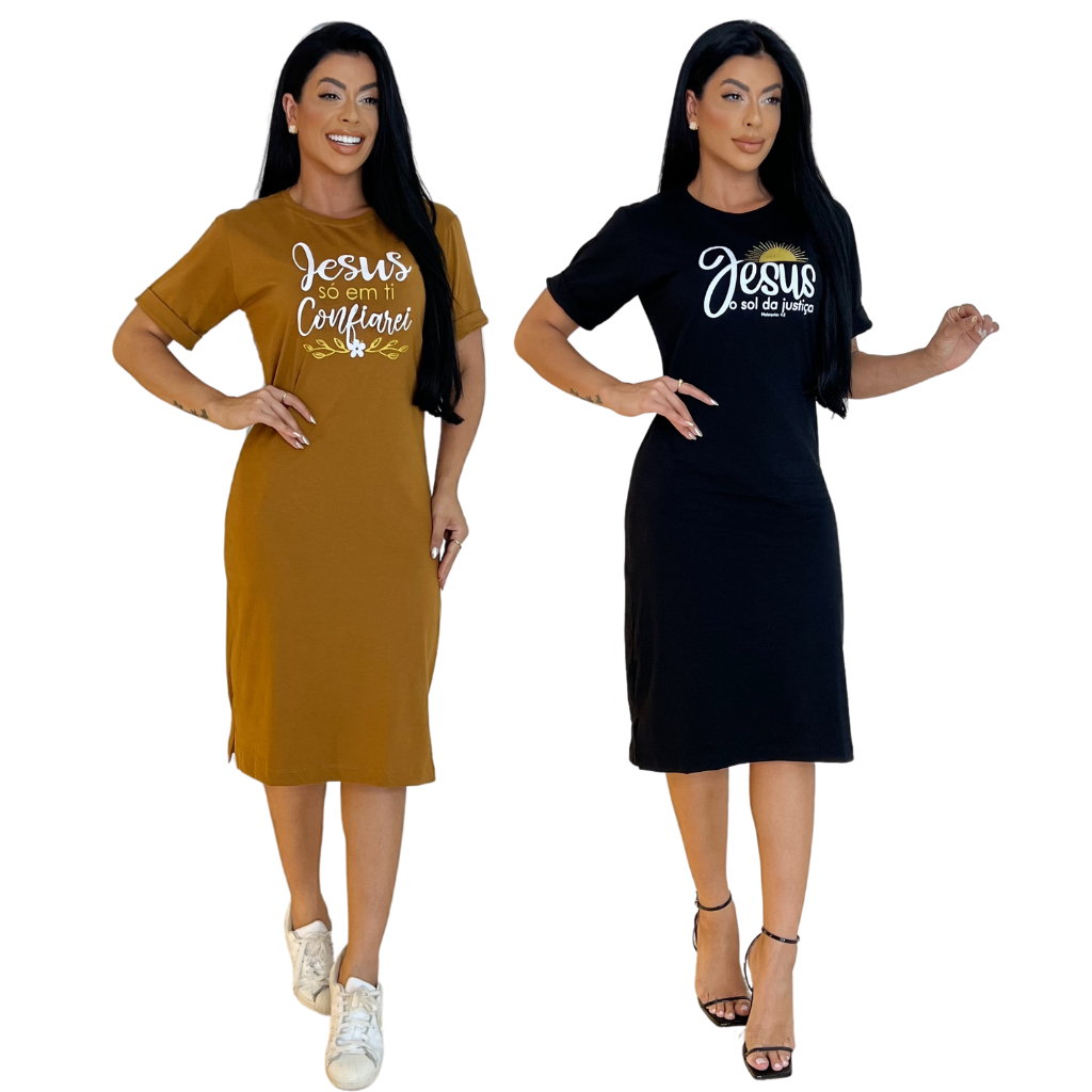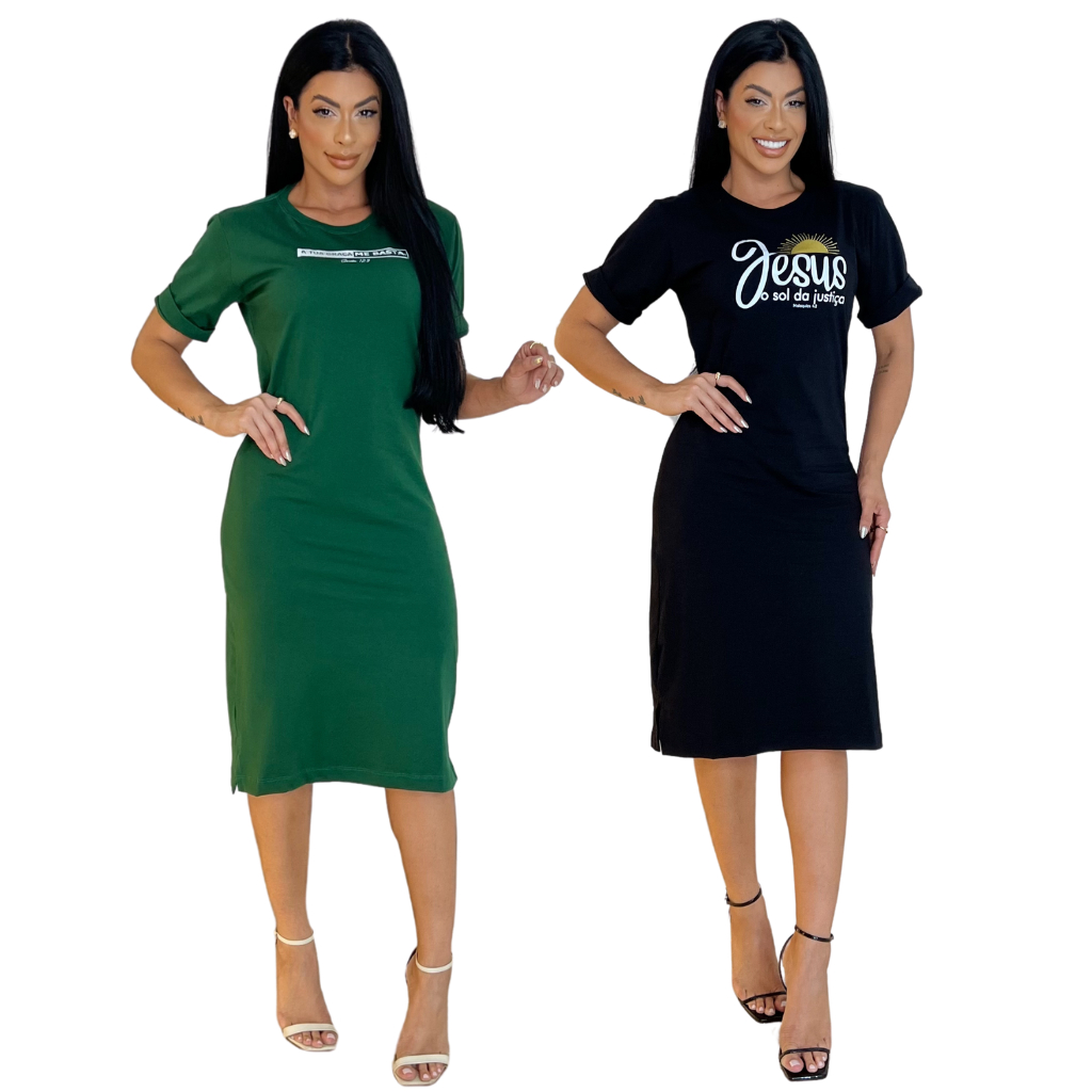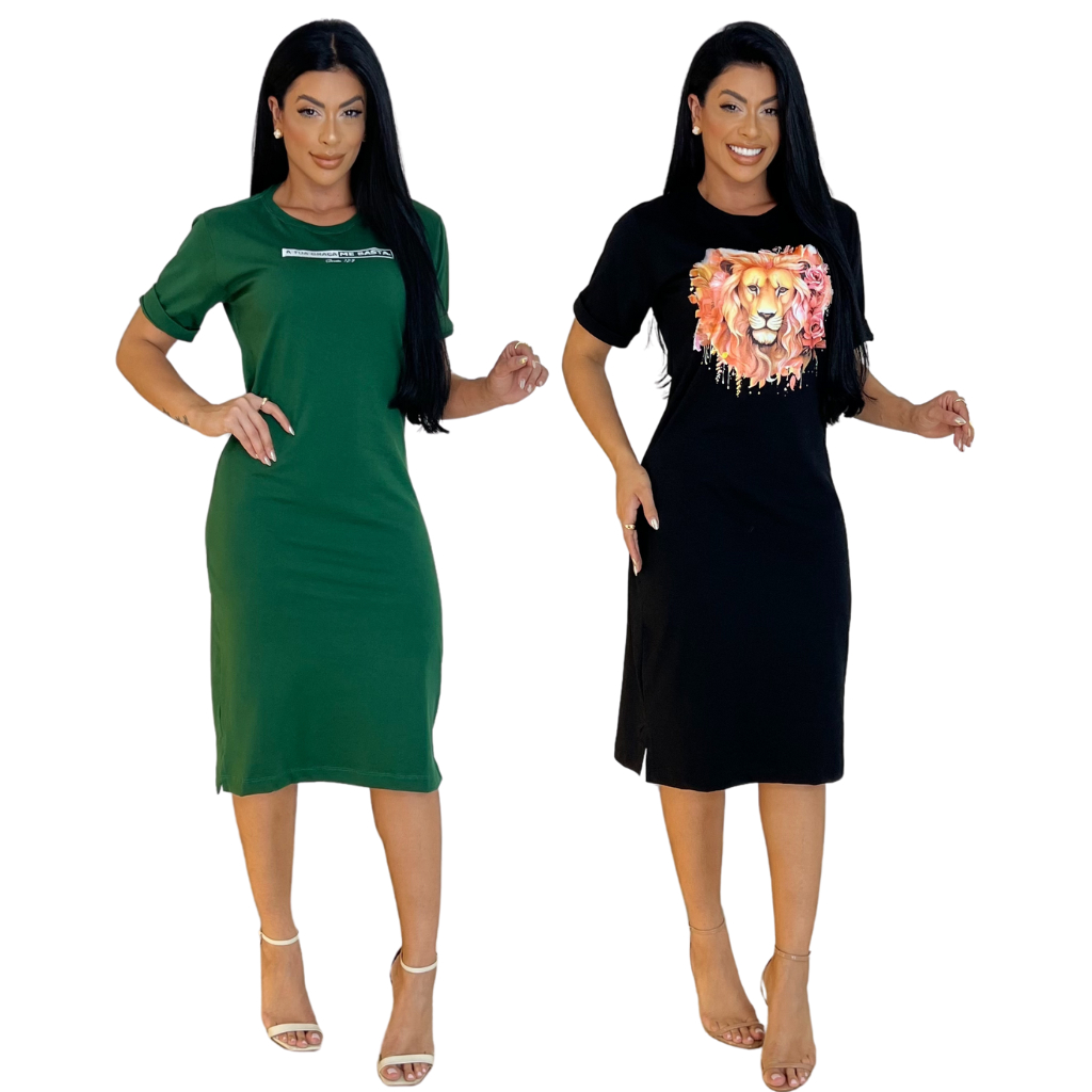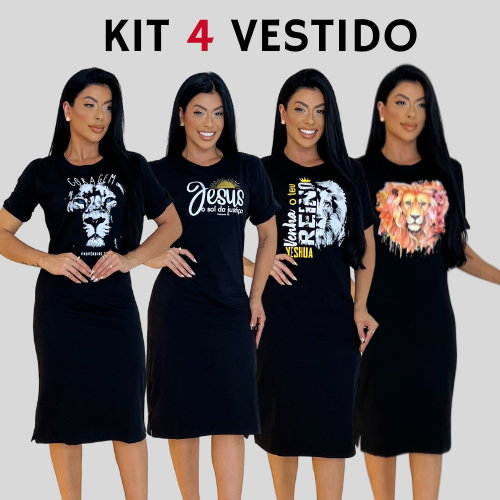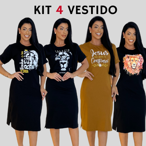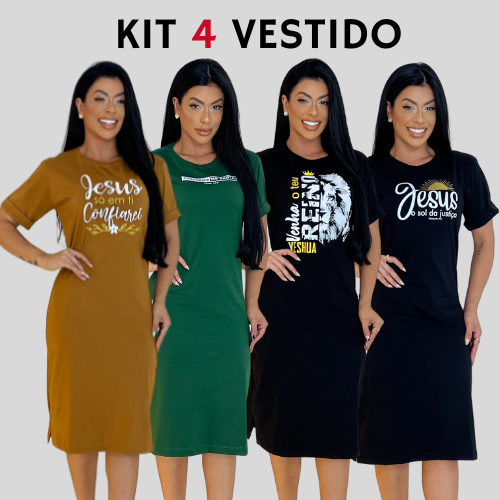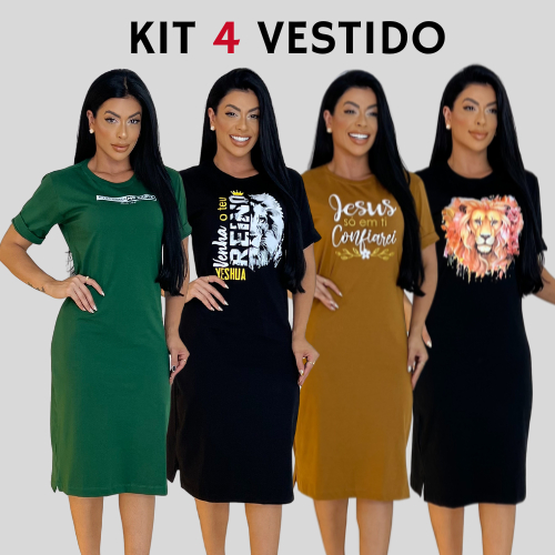 Kit 4 Vestidos Midi Feminino 100% Algodão Premium Confortável com Fenda Do P ao GG