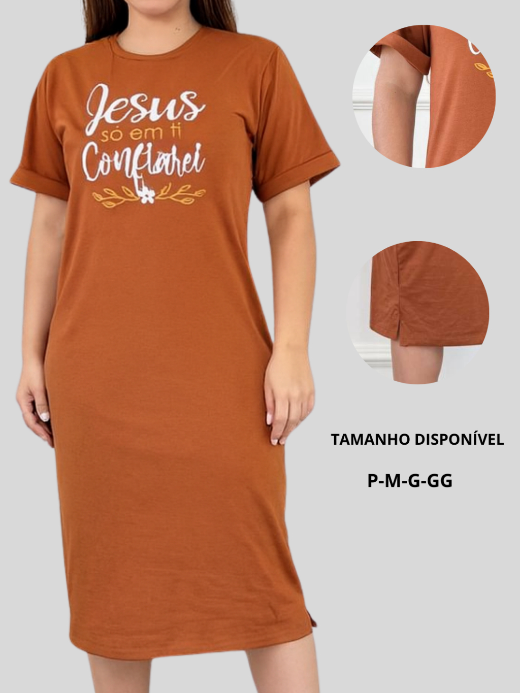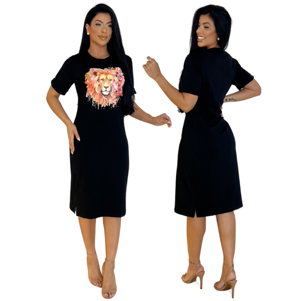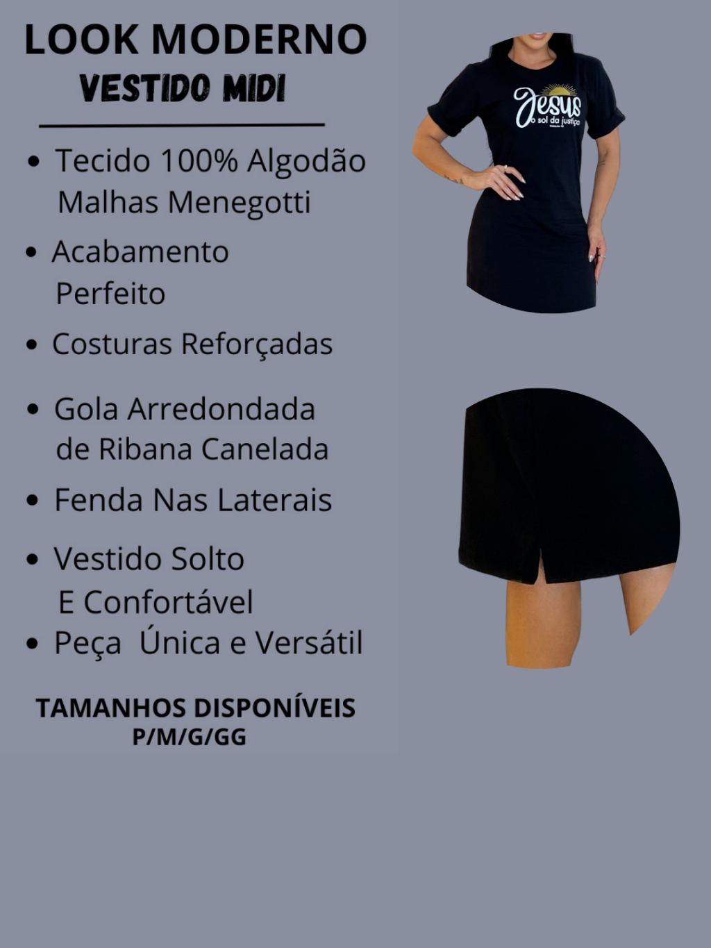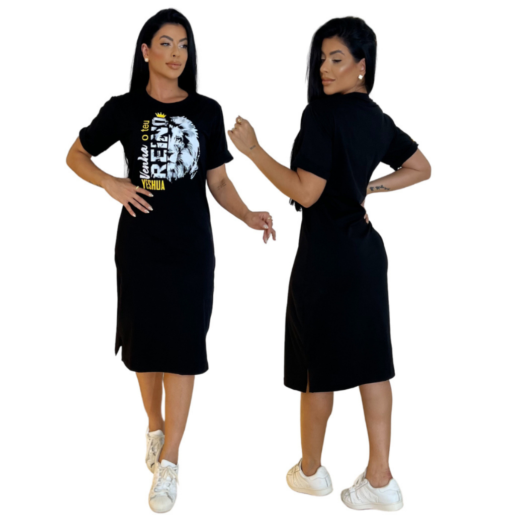 Kit 2 ou 1 Vestidos Midi Feminino 100% Algodão Premium Gola Redonda com Fenda