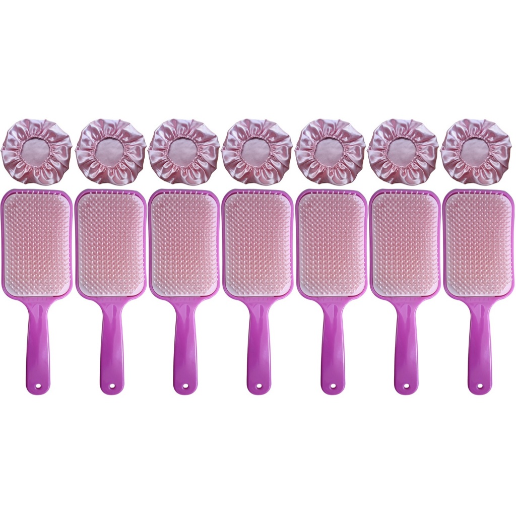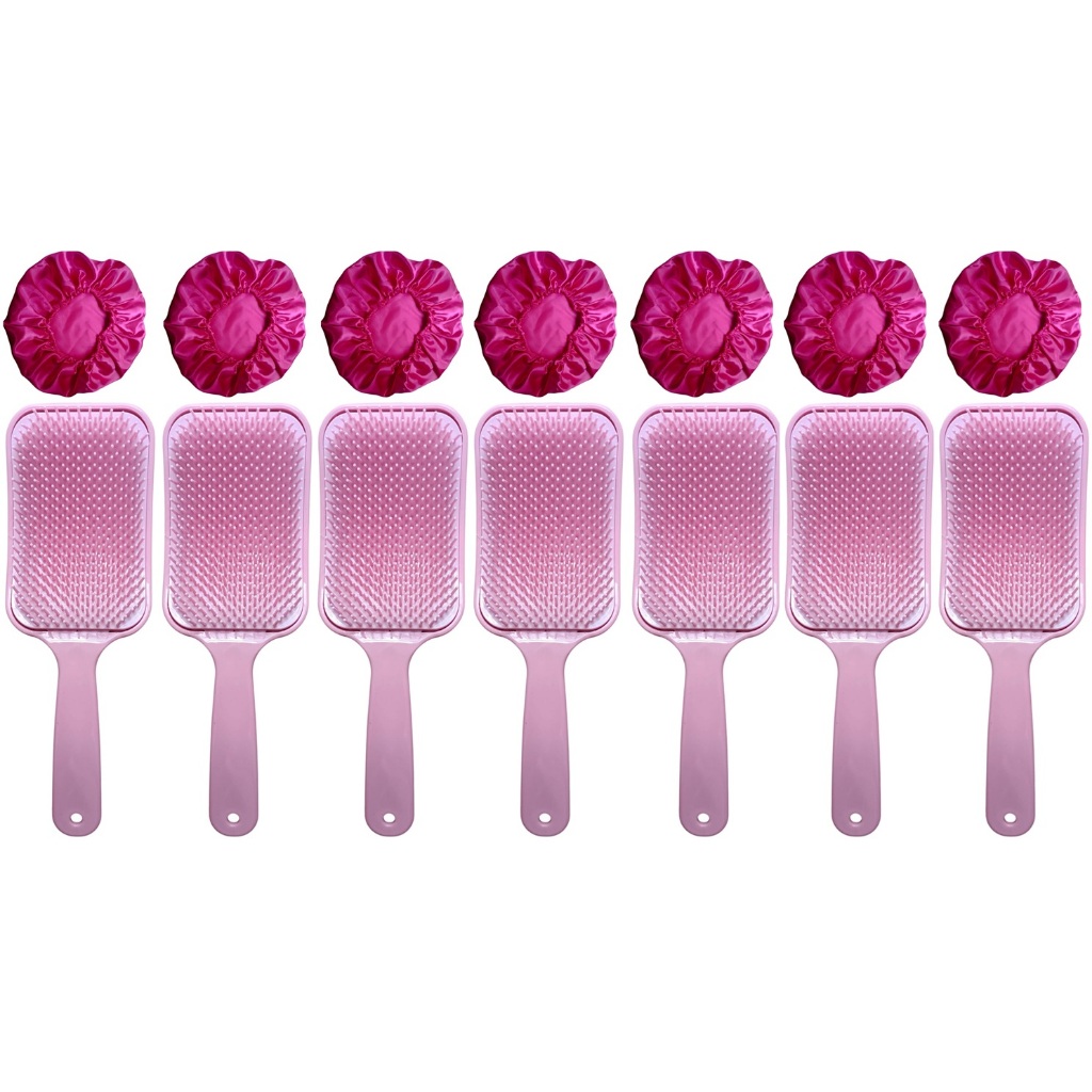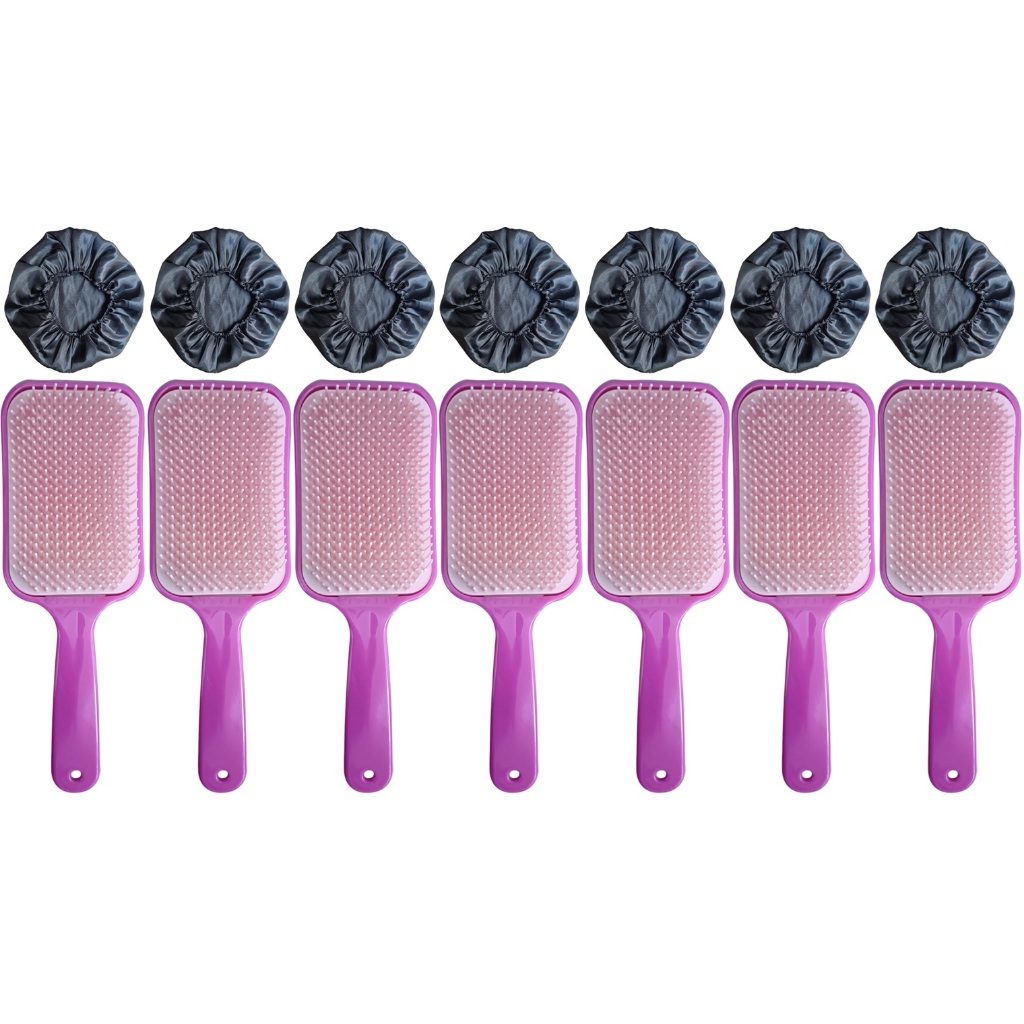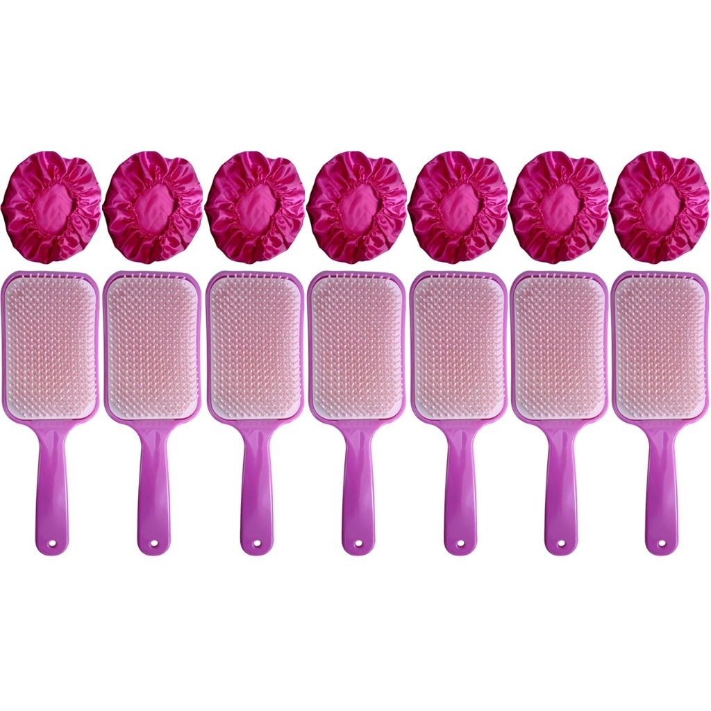 14 Peças = 7 Touca de Cetim + 7 Escova RAQUETÃO Sem Quebrar Os Fios salão beleza CABELO