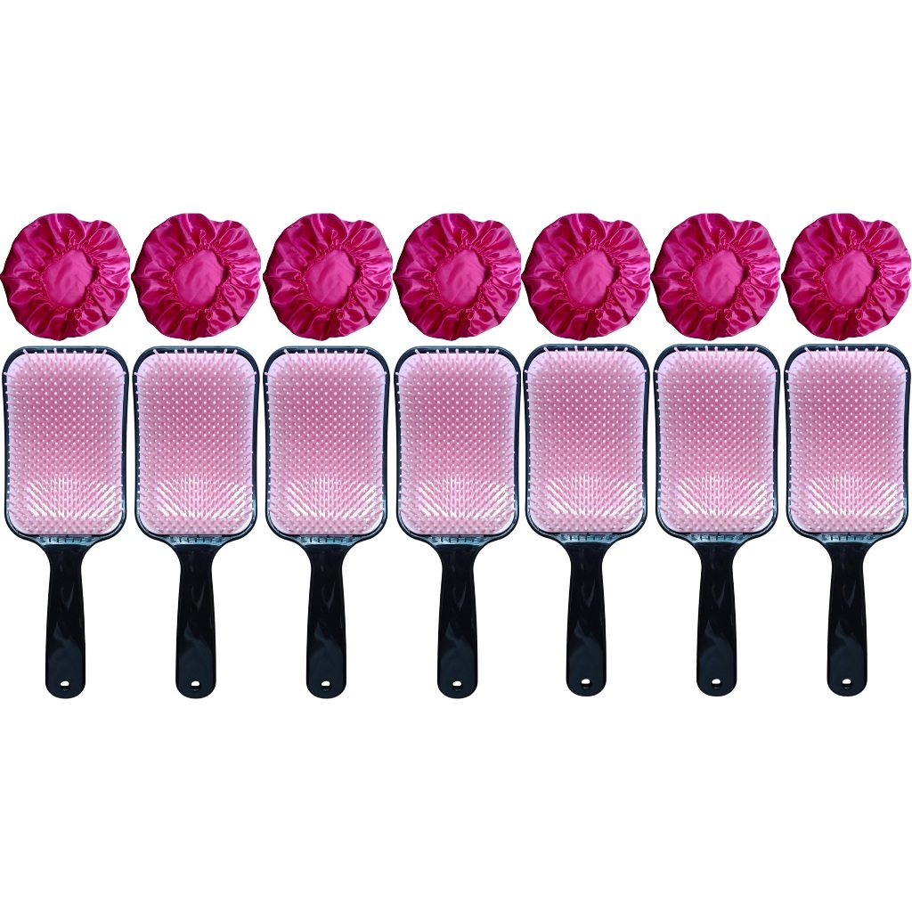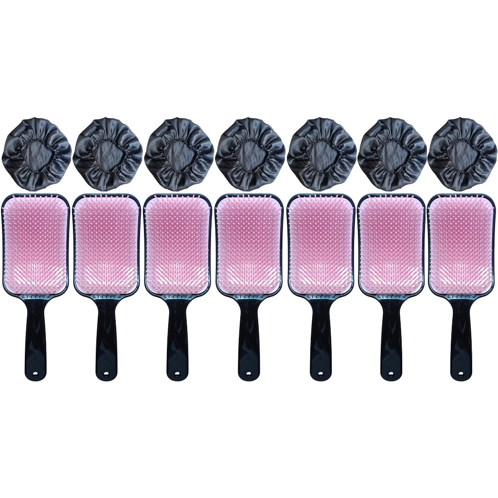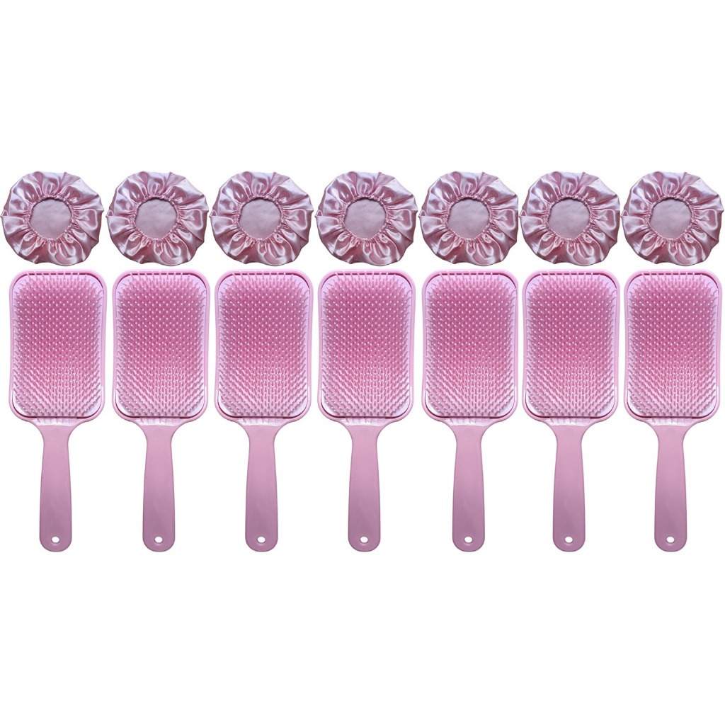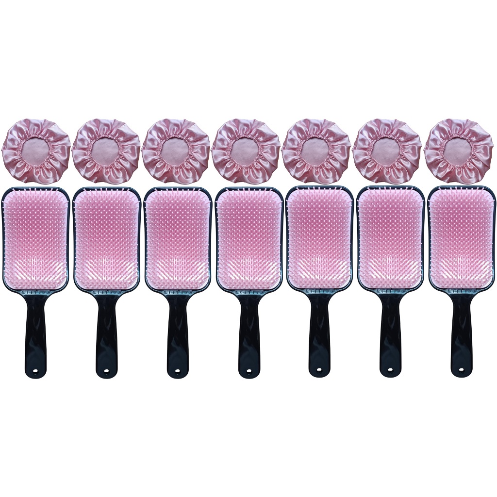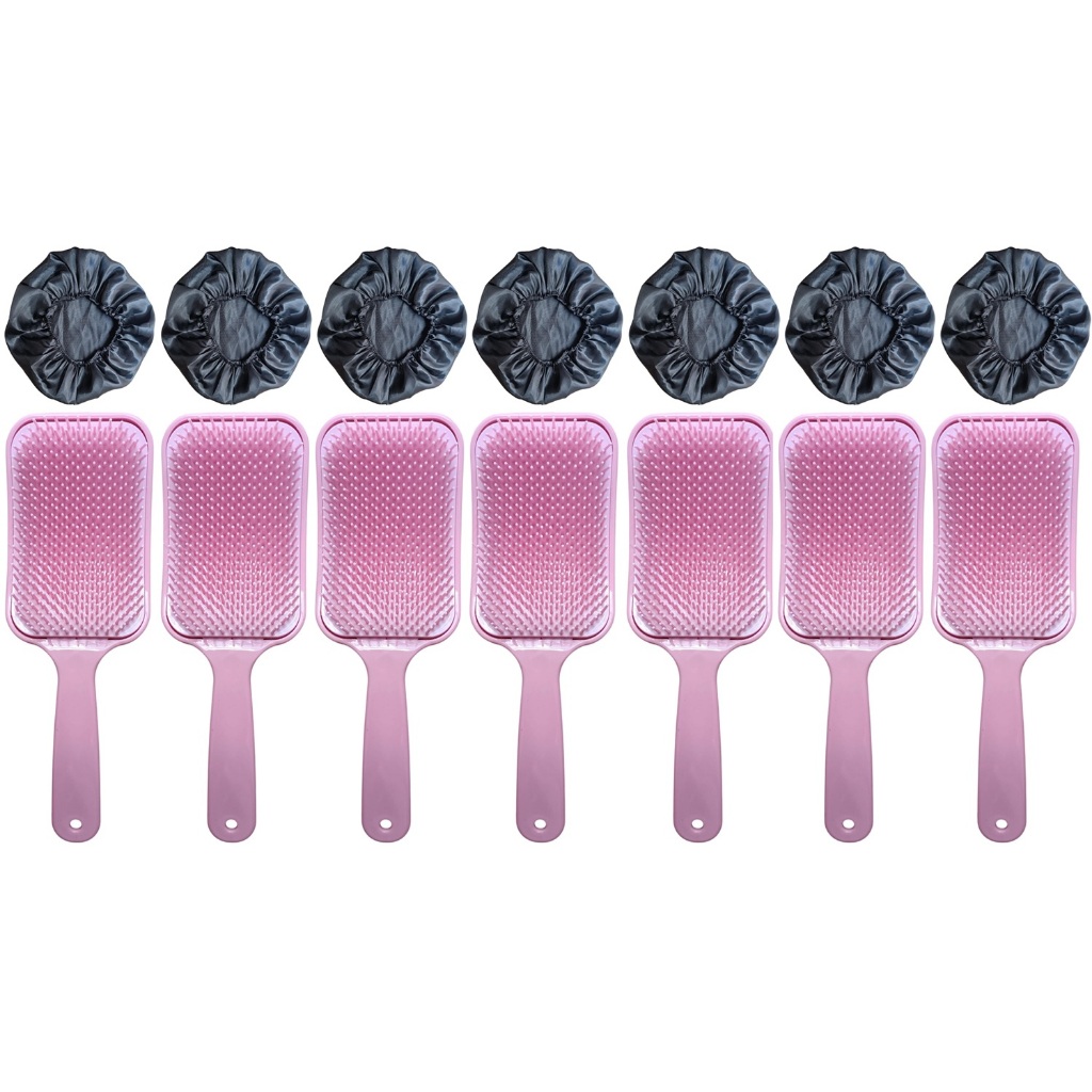 14 Peças = 7 Touca de Cetim + 7 Escova RAQUETÃO Sem Quebrar Os Fios salão beleza CABELO
