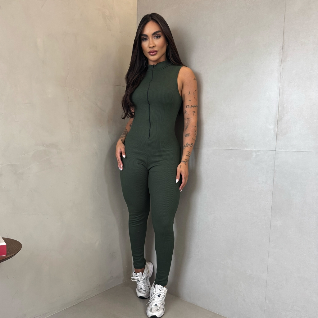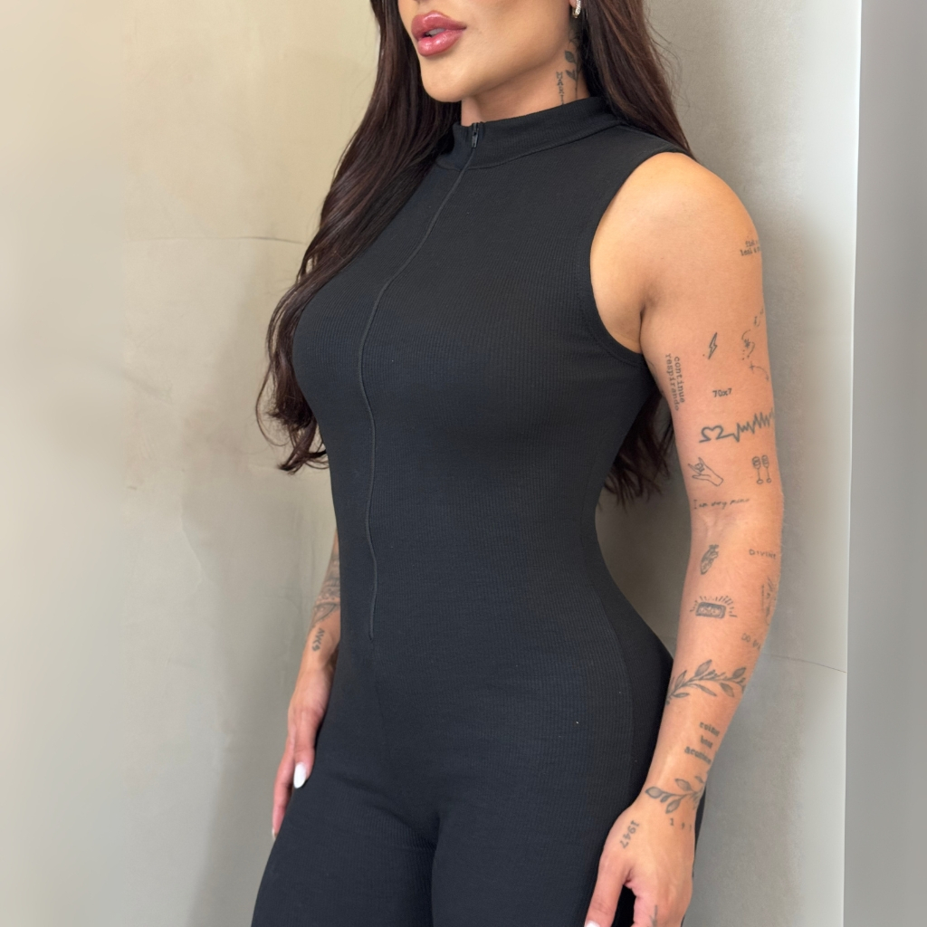 Macacão Virginia Feminino Ribana com Zíper-Regata Elegante e Perfeito