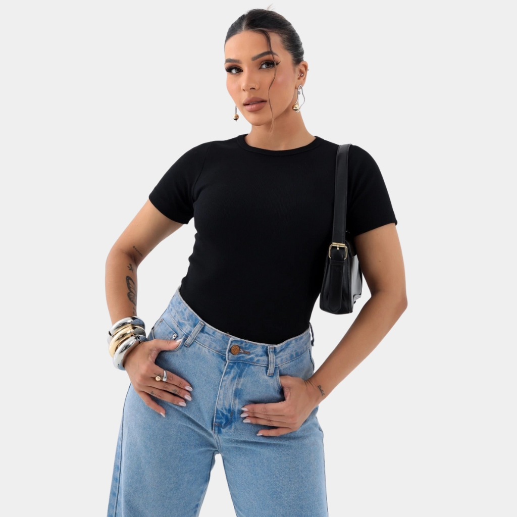Blusa Blusinha Feminina Suplex Duplo Básica Elegante Blogueira Tendencia