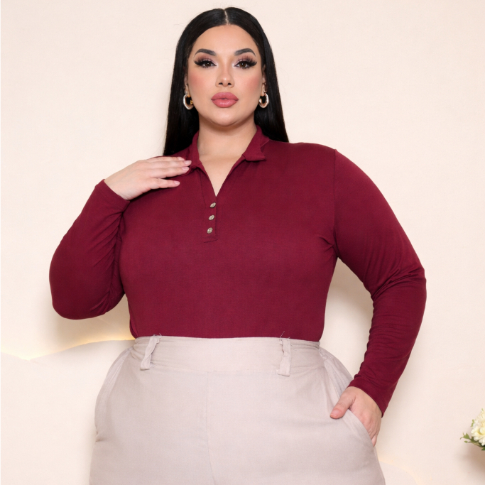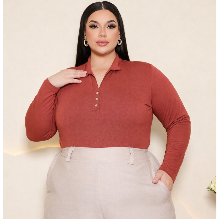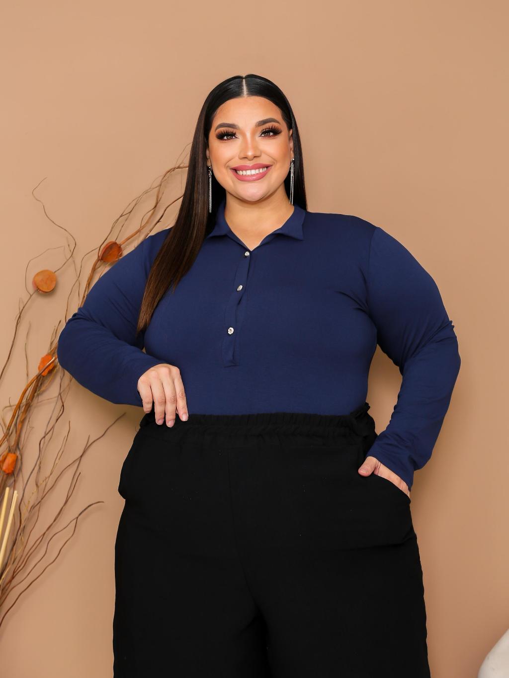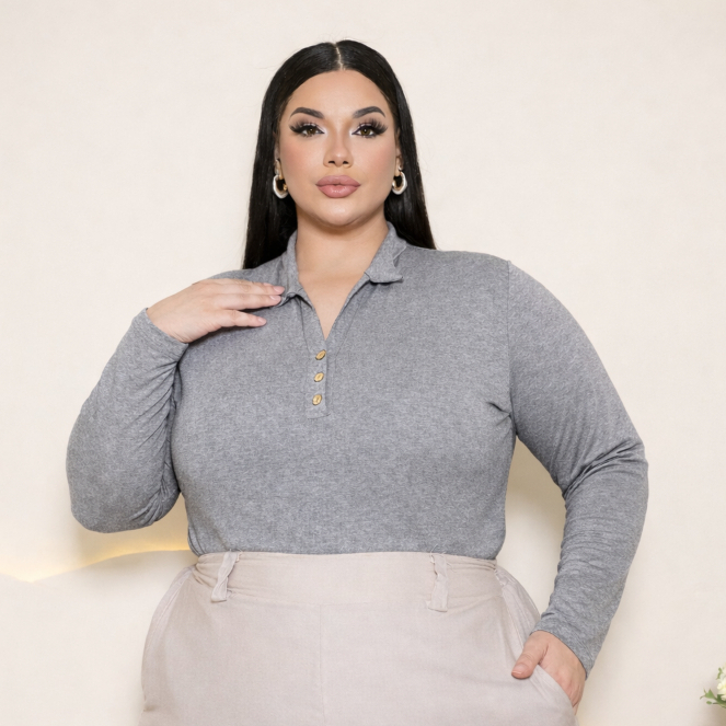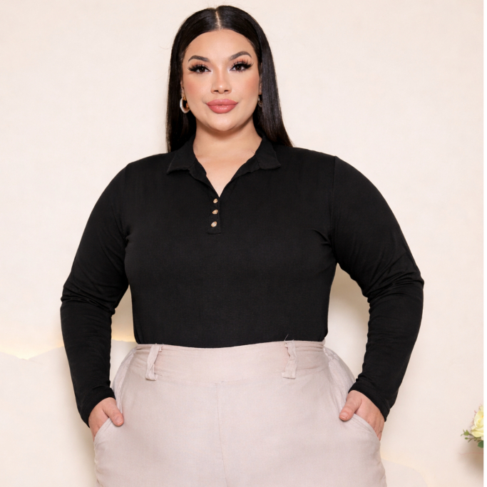 Blusa Plus Size Camisa Polo Manga Longa Gola Regulavel Viscolycra Premium femenino moda casual elegante- GG G1 G2