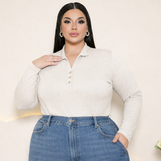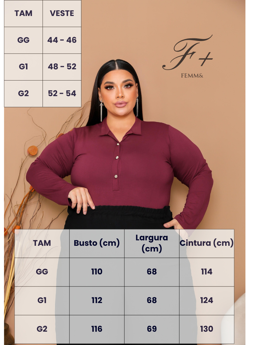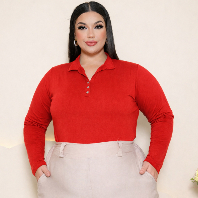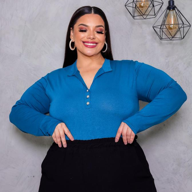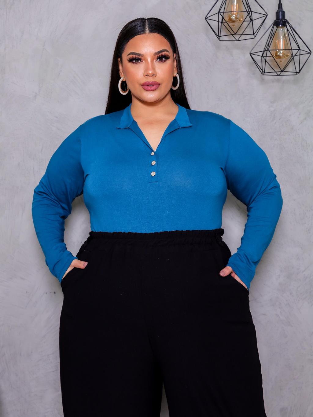 Blusa Plus Size Camisa Polo Manga Longa Gola Regulavel Viscolycra Premium femenino moda casual elegante- GG G1 G2