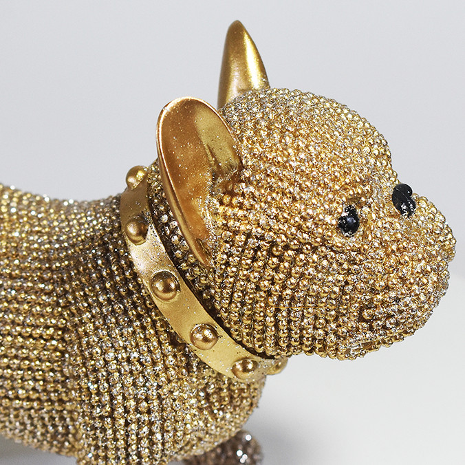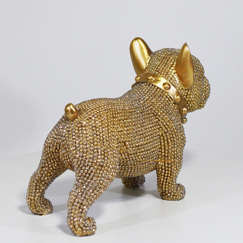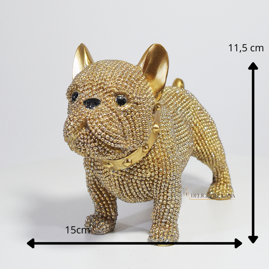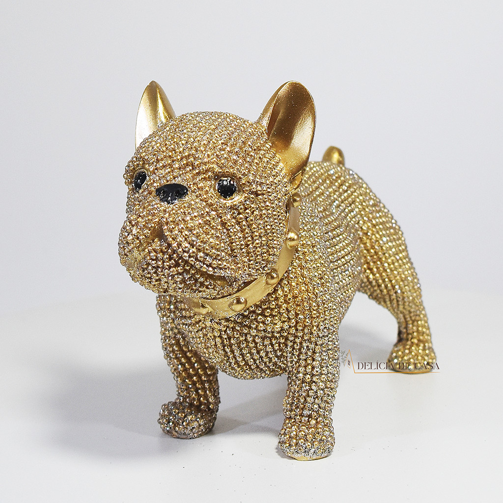Escultura Decorativa Bulldog Francês Dourado com Cristais – Estátua de Cachorro Luxo 15x11,5x6,5 cm