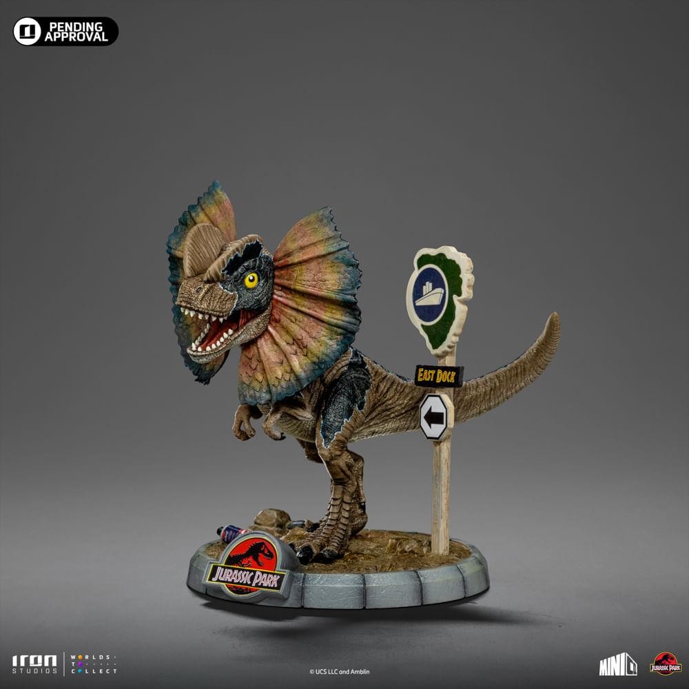 Estátua Dilofossauro - Jurassic Park - MiniCo - Iron Studios