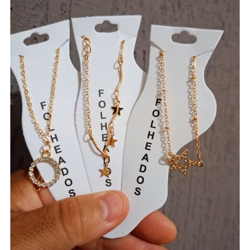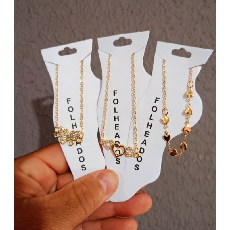 Tornozeleira Feminino Folheado A Ouro 18k Kit Com 3PÇS Com Pingente E Garantia De 1 Ano