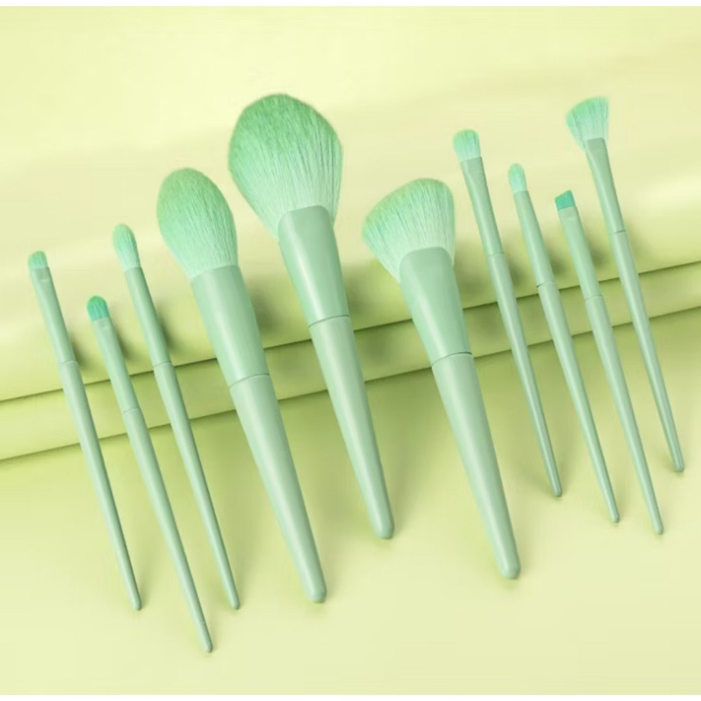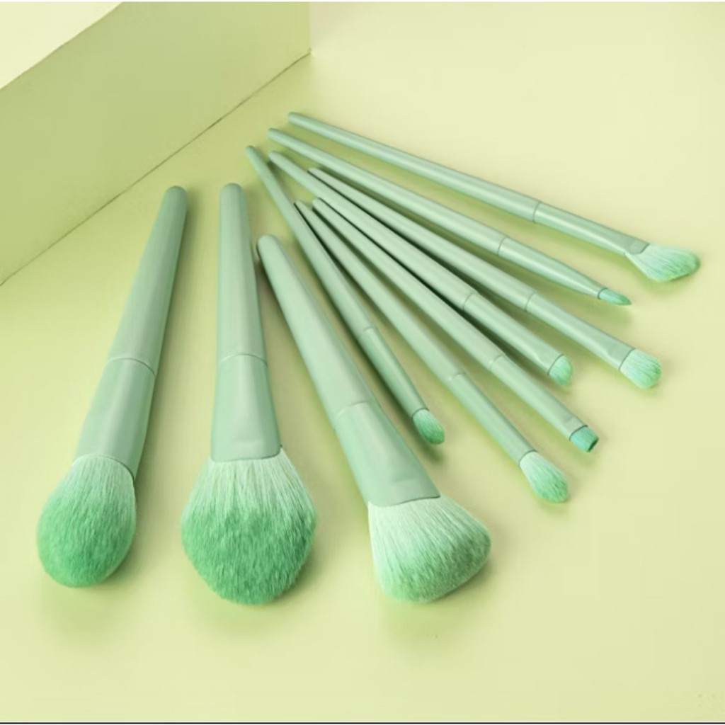 KIT 10 Pincéis Verde Profissional Para Maquiagem Pinceis Esfumar Contorno