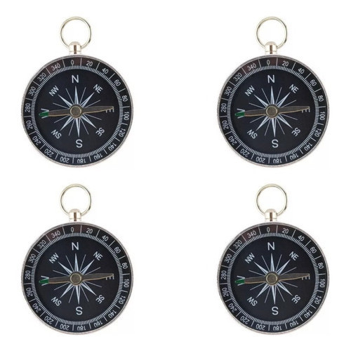 Kit 4 Chaveiro Bússola De Bolso Camping Caça Trilha Pesca