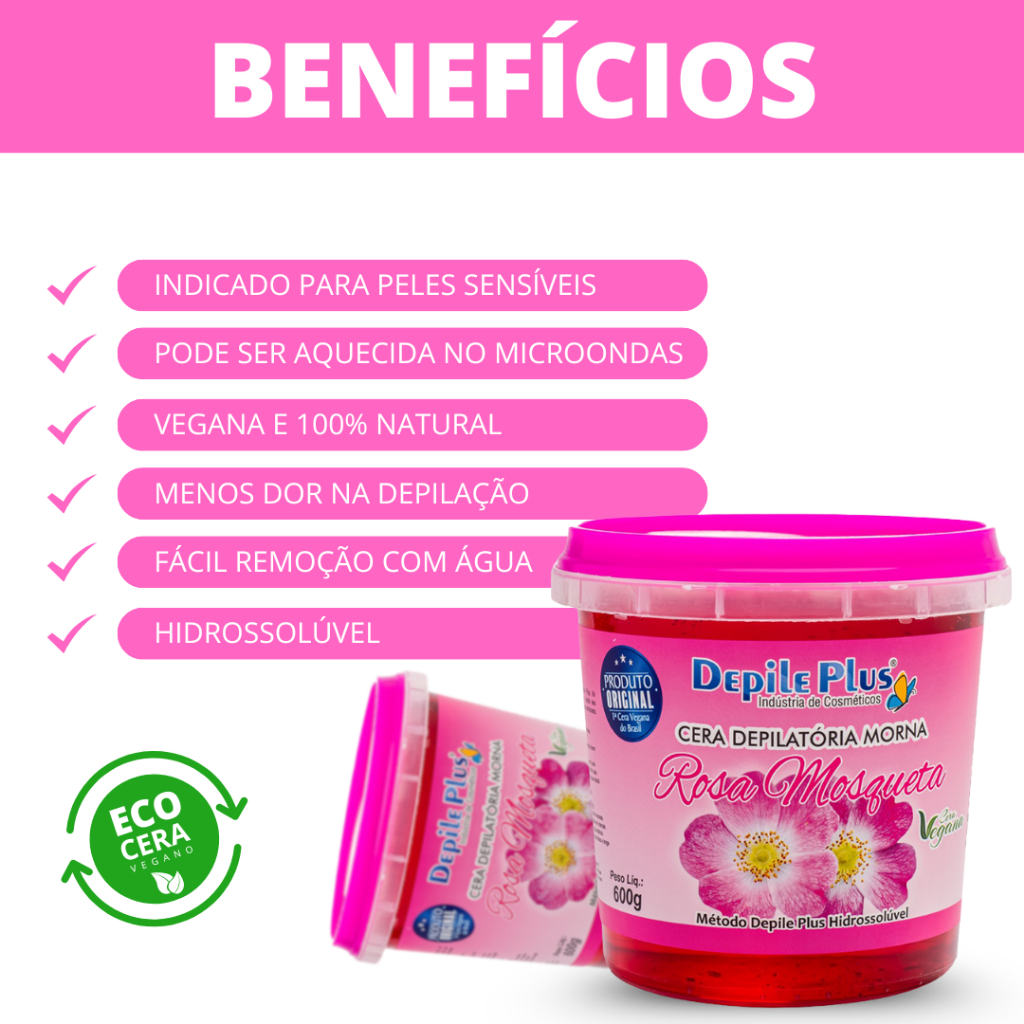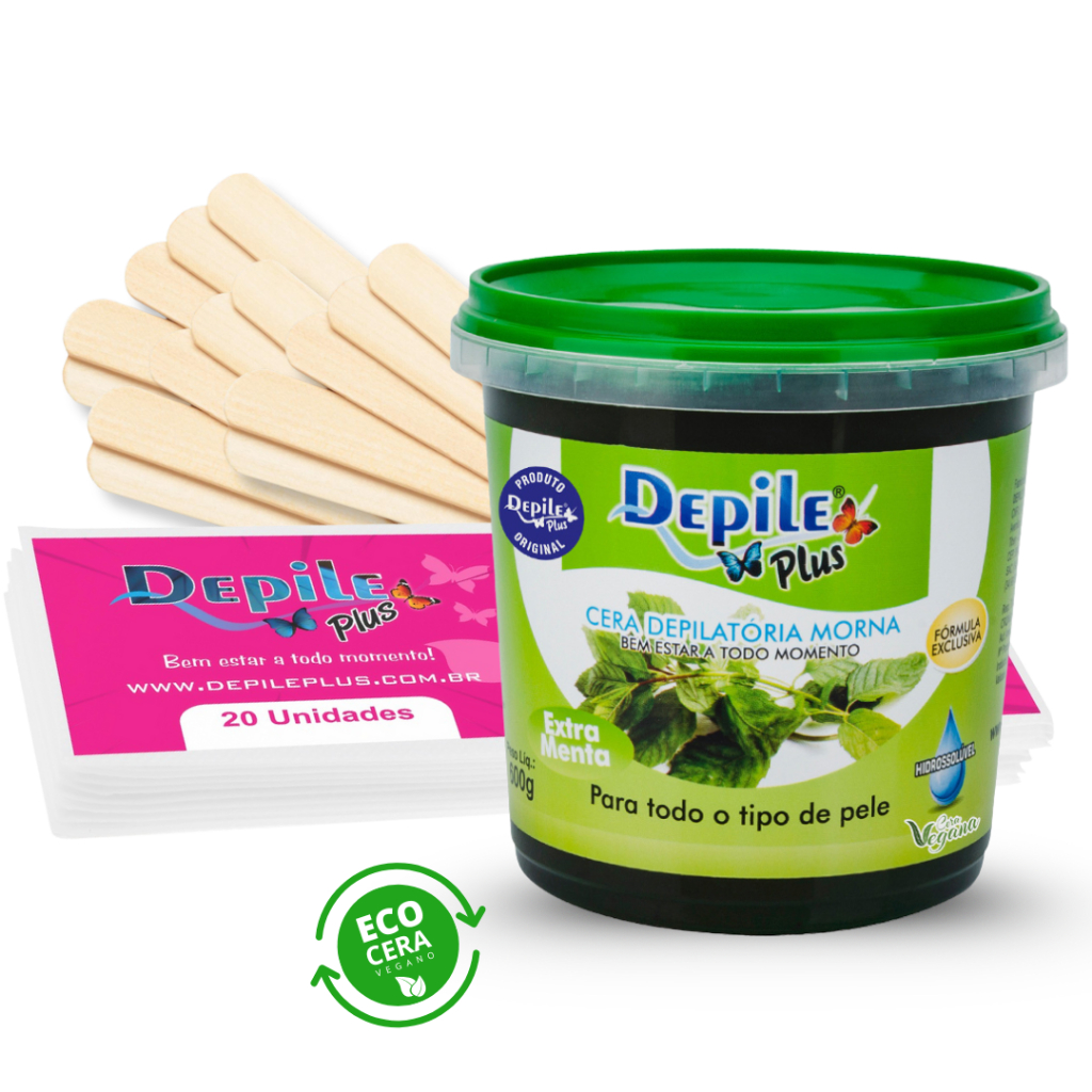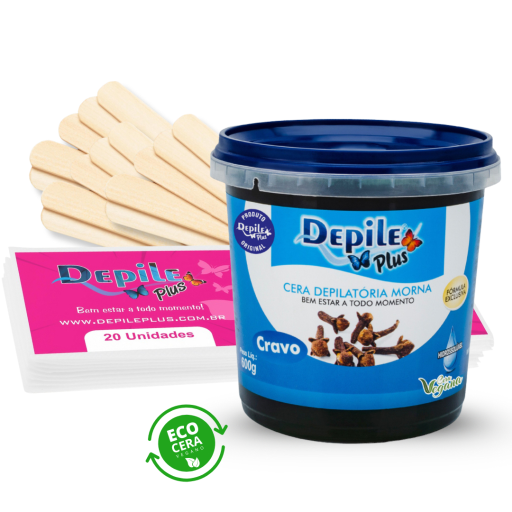 Kit Cera Depilatoria Hidrossoluvel Vegana 600g Espátula Larga 15 Unidades Papel Depilatorio 20 Unidades