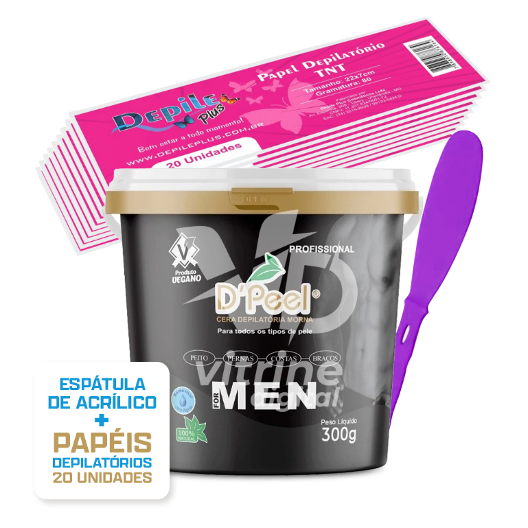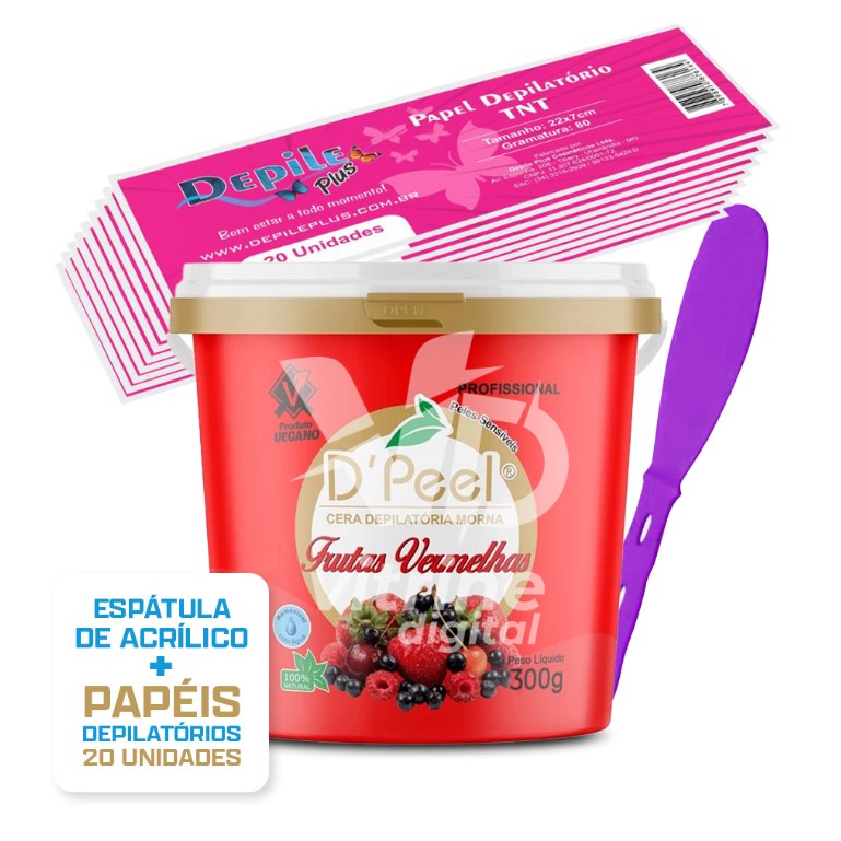 Kit Cera Depilatoria Hidrossoluvel Dpeel 300g + Espátula Acrilica + Papel Depilatorio 20 Unidades