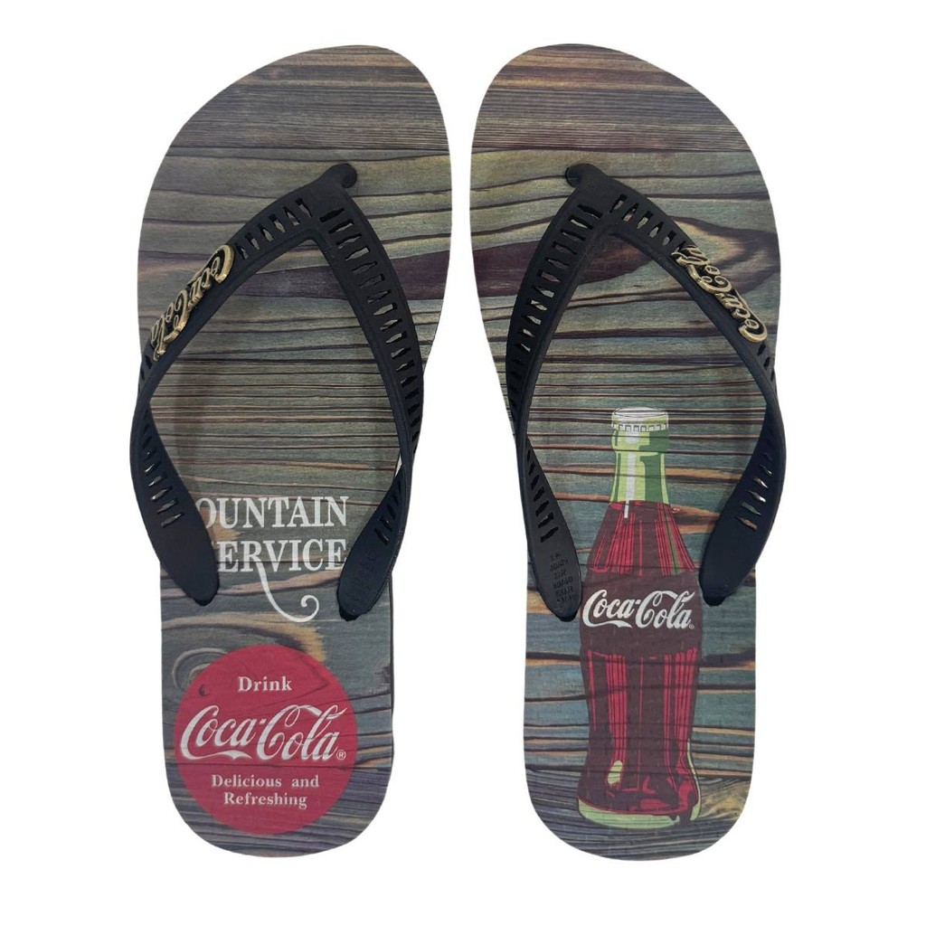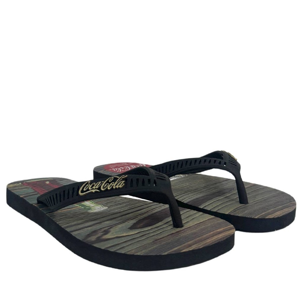 Chinelo Coca Cola Fountain Wood Masculino Casual Confortável Leve Solado Borracha