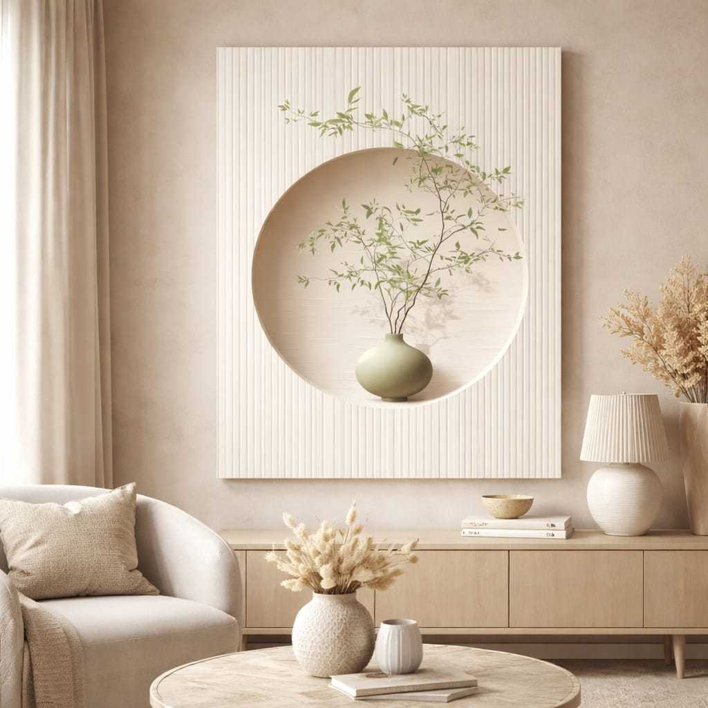 Quadro Decorativo Minimalista Vaso com Folhagem Verde – Arte Moderna Elegante para Sala e Quarto