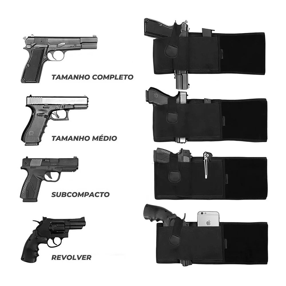 Coldre De Barriga Velado Tático Cintura Universal Preto Para Destros