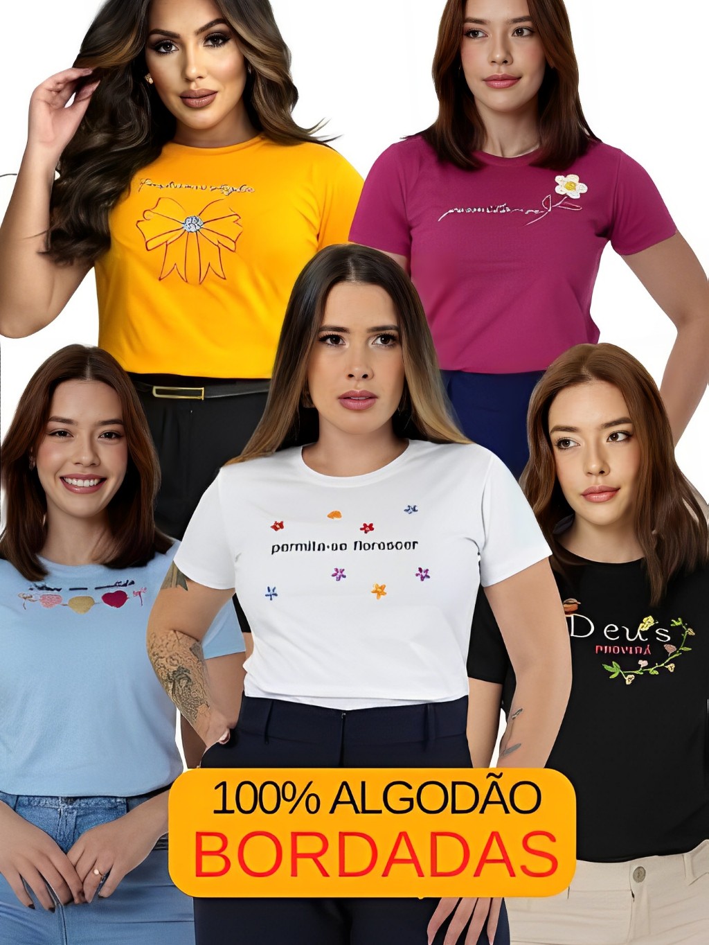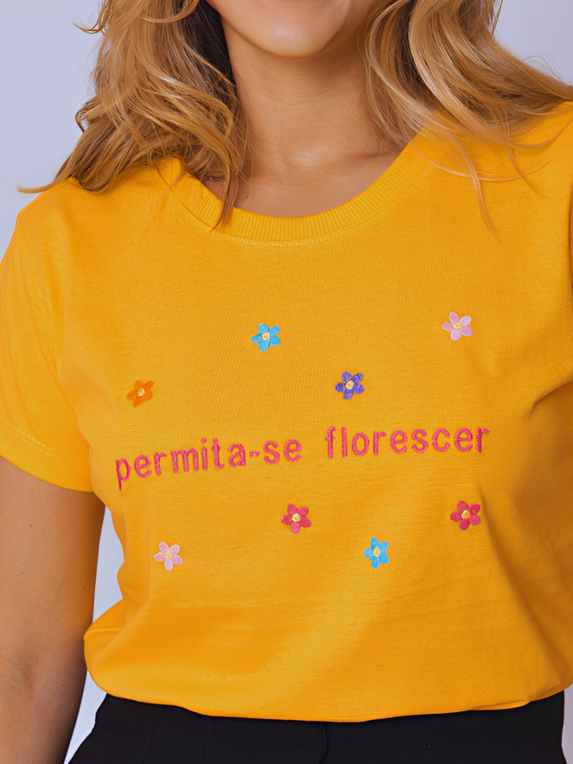 kit 5 Blusas Camiseta Bordadas Estampa Variadas T-shirt Feminina Blusas Casual 100% Algodão