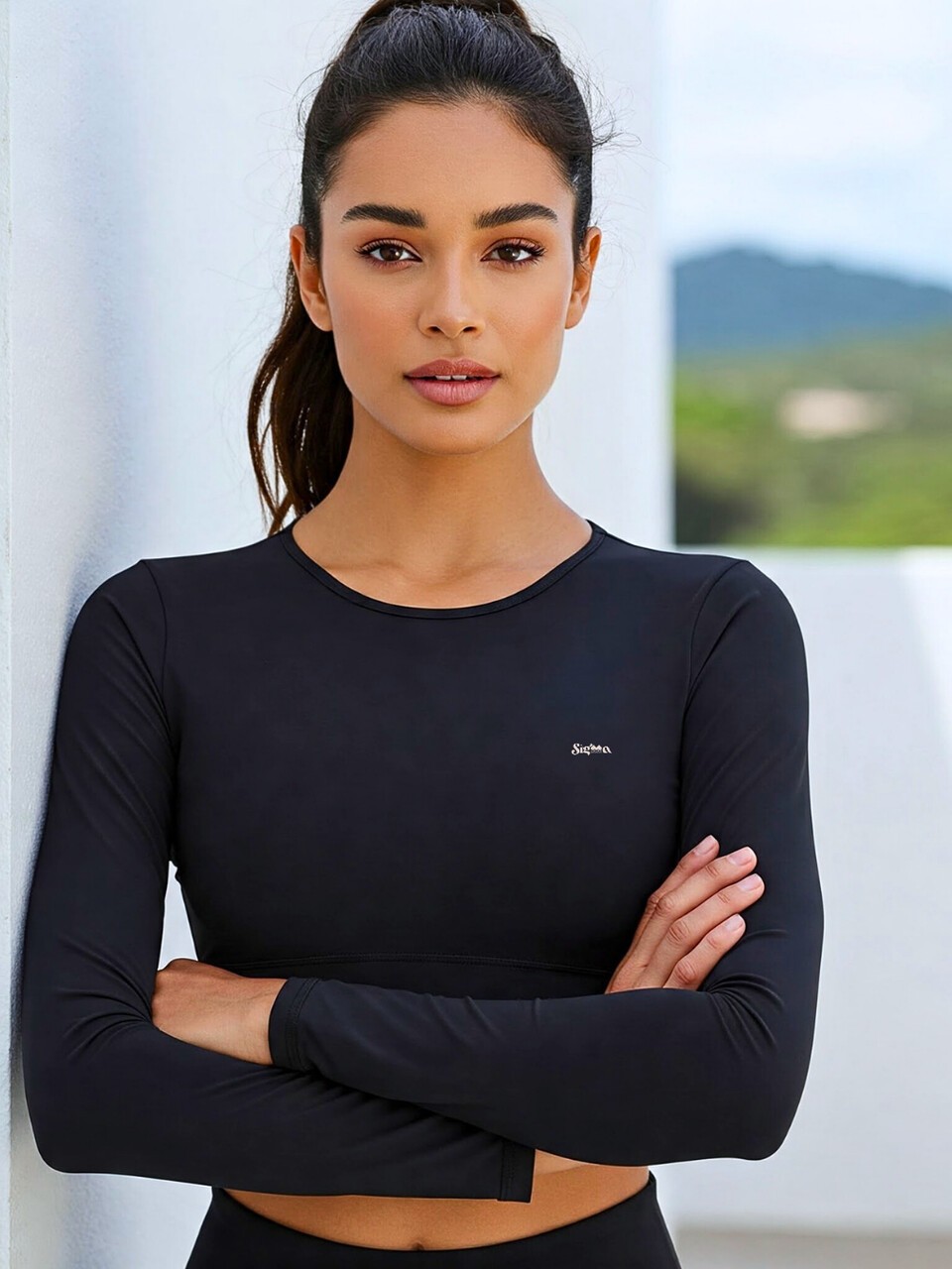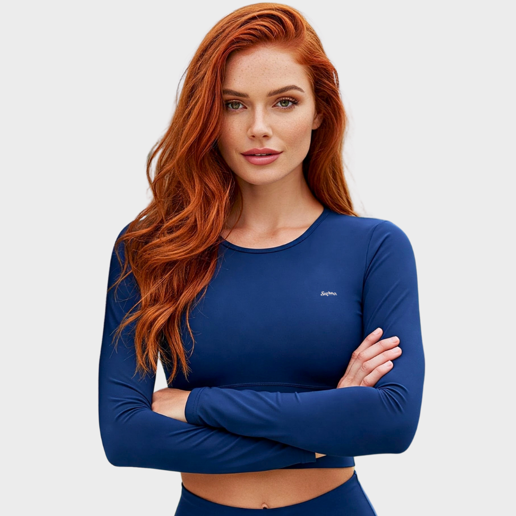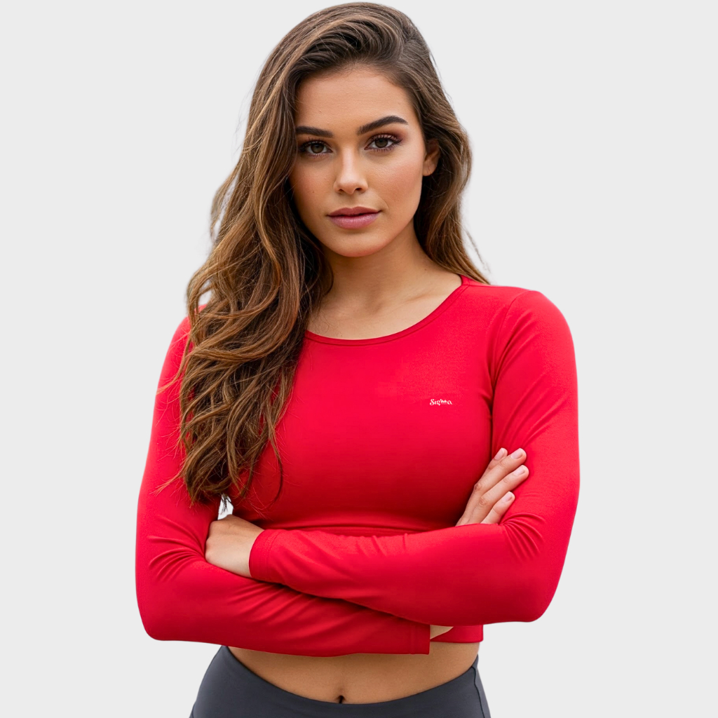 Cropped Feminino Avulso Proteção Solar Uv 50+ Segunda Pele Fitness Esportivo Manga Longa Logo Croped