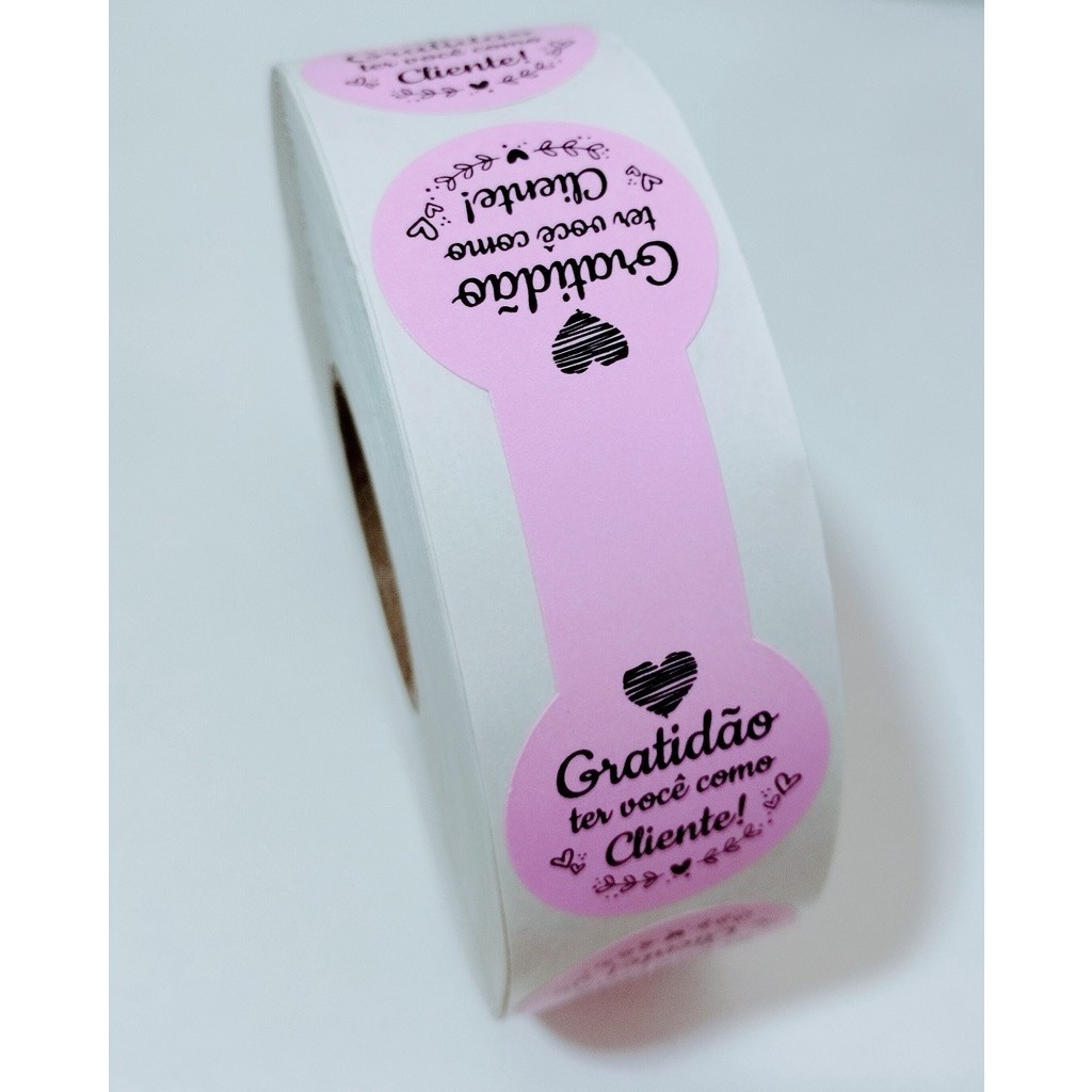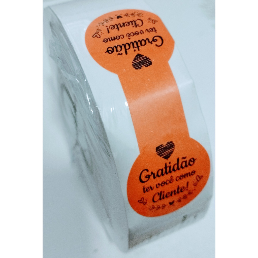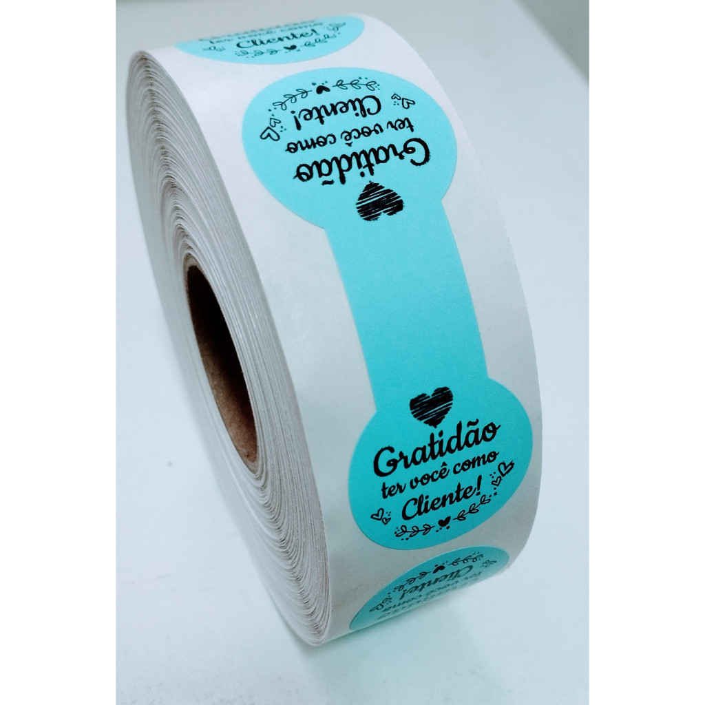 1000 Etiqueta 8x3cm Adesivo Gratidão ter você como Cliente Caixa Sacolas Entregas Delivery