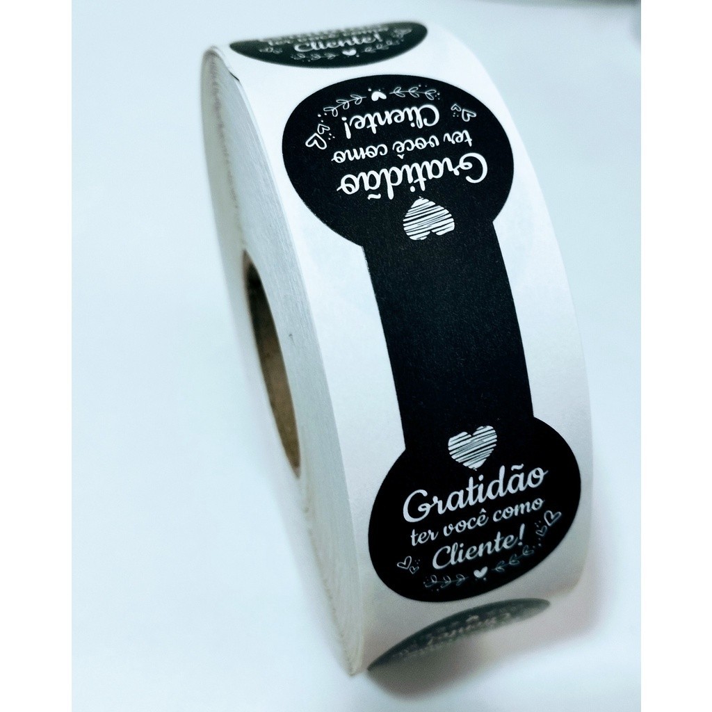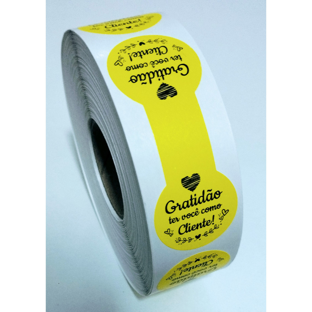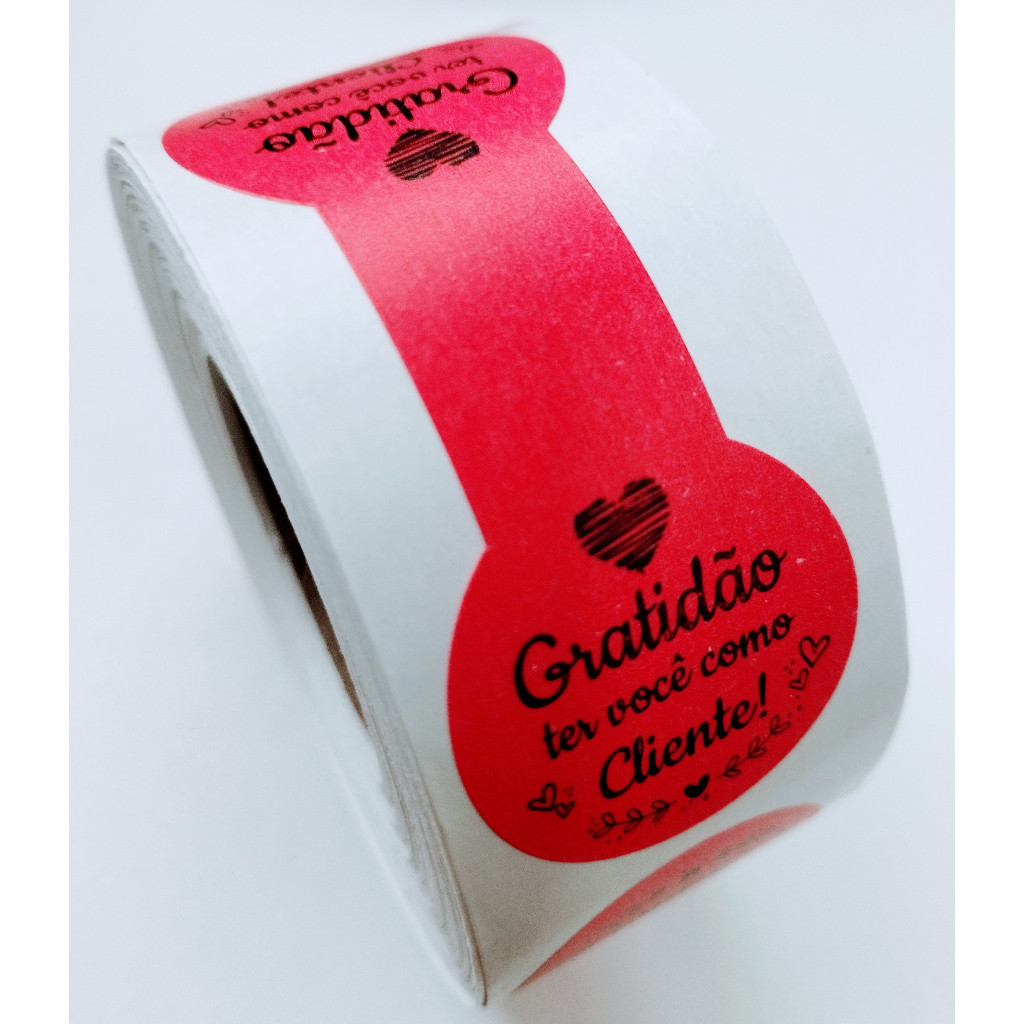 1000 Etiqueta 8x3cm Adesivo Gratidão ter você como Cliente Caixa Sacolas Entregas Delivery