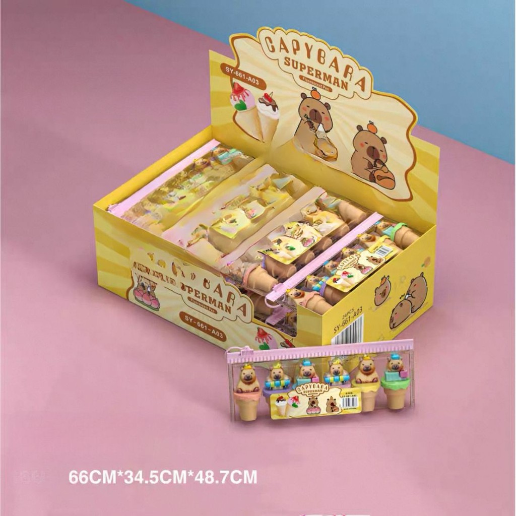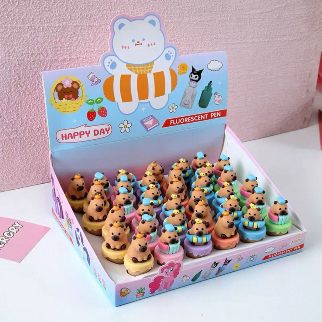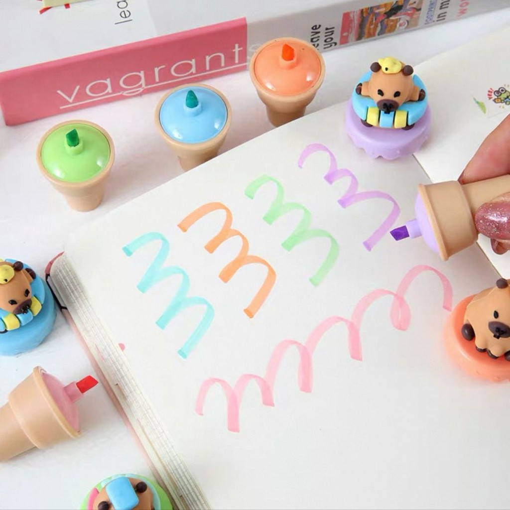 6 Peças Conjunto de Papelaria com Canetas Marca-Texto Fluorescentes Mini Fofas de Capivara em DesignCartoon Aleatório