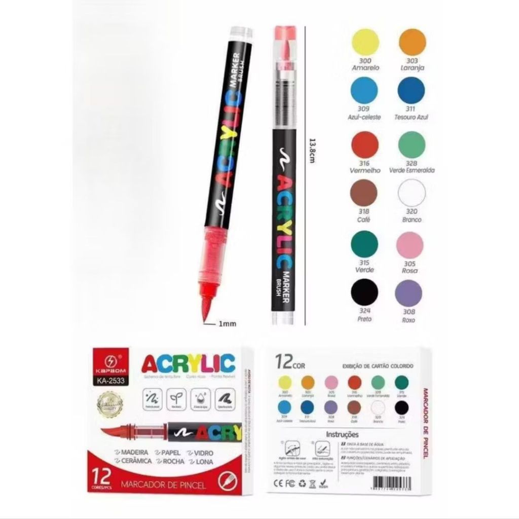 12/24/36 Canetas Marcador Acrílico Permanente Colorida Brush